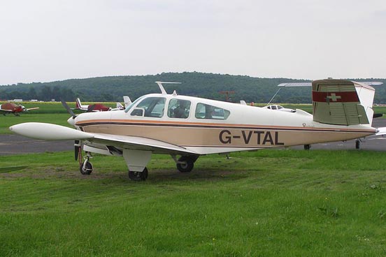 - (1968-1969) E33A with a ten-inch fuselage stretch, four cabin windows each side, starboard rear double doors and seats for six, one 285hp Continental IO-520-B engine, 184 built.
