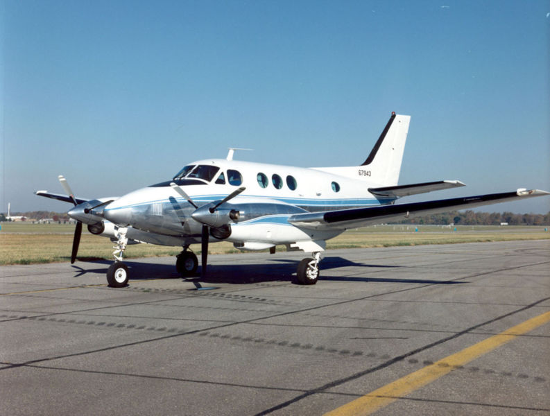 A total of 184 B90 models were produced before the Model C90 was introduced in 1971, with wingspan increased over earlier models by 4 ft 11 in (1.5 m) to 50 ft 3 in (15.32 m), Maximum Take-Off Weight (MTOW) increased by 350 lb (160 kg) to 9,650 lb (4,378 kg), and PT6A-20A engines. The broadly similar Model E90 was introduced the following year, with PT6A-28 engines; the two were produced in parallel. Further refinement of the 90 series resulted in the Model F90 and follow-on Model F90-1. The F-models featured the T-tail of the Model 200 King Air mated to the fuselage and wings of the E90, with PT6A-135 engines of 750 shp (560 kW) driving four-bladed propellers. The F90 prototype flew on 16 January 1978 and 203 production versions followed between 1979 and 1983, when the F90 was superseded by the F90-1. The F90 prototype was re-engined with Garrett AiResearch TPE-331 engines to test the feasibility of a Model G90, but this model was not put into production. The Model C90-1 entered production in 1982 after 507 C90s and 347 E90s had been built, and featured PT6A-21 engines and improvements to the pressurisation system. 54 were built. The following year the F90-1 was put into production with redesigned engine cowlings, upgraded PT6A-135A engines, hydraulic landing gear, and triple-fed electrical bus; only 33 were built by the time production terminated in 1985. The C90-1 was soon followed by the Model C90A, which featured the redesigned engine cowlings of the F90-1. The C90A received an increase in MTOW in 1987, being certified to 10,100 lb (4,580 kg). The C90A model was in production until 1992, by which time 235 had been built, all but 74 with the increased MTOW. Only two C90As were built in 1992, the Model C90B followed that year with airframe improvements, four-bladed propellers, and propeller synchrophasing, all in an effort to reduce cabin noise. This model also had PT6A-21s; the first production C90B was fitted with the 10,000th PT6 engine delivered to Beechcraft. In 1994 a cheaper version was introduced as the C90SE (Special Edition), with three-bladed propellers, standardised interior and mechanical instruments instead of the Electronic Flight Instrument System (EFIS) fitted to the C90B. A total of 456 C90Bs and C90SEs were delivered by the time production of these models ended in late 2005. In July 2005, during the Oshkosh Airshow, Beechcraft introduced the C90GT. The C90GT was fitted with 750 shp (560 kW) PT6A-135As, flat rated to the same 550 shp (410 kW) as the earlier King Airs. This engine change increased performance due to lower operating temperatures, improving both cruise speed and climb rate. With a 275 kt (509 km/h, 316 mph) cruise speed, the C90GT was highly competitive with the new generation of Very Light Jets over short to medium distances, while providing a larger and more luxurious cabin. C90GT deliveries commenced at the beginning of 2006. On 21 May 2007, during the 7th Annual European Business Aviation Convention & Exhibition in Geneva, Beechcraft announced the Model C90GTi updated version of the C90GT, featuring the Rockwell Collins Proline 21 avionics package previously only offered for the B200 and B300 King Airs. Deliveries commenced in 2008 after 97 C90GTs were delilvered to customers over the previous two years. Model 100 seriesThe Model 100 is a stretched derivative of the Model 90 featuring five cabin windows instead of the Model 90's three; MTOW increased by 1,300 lb (590 kg) over the 90, to 10,600 lb (4,810 kg). The 100 used the wings, tail, and engines (two PT6A-28 engines rated at 620 shp) from the Model 99 airline, itself a development of the Queen Air (as was the Model 90). The Model 100 was flown for the first time on 17 March 1969 and unveiled to the public in May. 89 Model 100s were built before it was superseded by the Model A100 in 1972, with a further increase in MTOW to 11,500 lb (5,220 kg), fuel capacity increased by 94 US Gallons (357 litres), and four-bladed propellers. A total of 157 A100s were built by the time production of this model ceased in 1979. The next in the series was the B100, which featured 715 shp (533 kW) Garrett AiResearch TPE-331 engines as an alternative to the Pratt & Whitneys offered on other King Airs, and another increase in MTOW to 11,800 lb (5,350 kg). The B100 was introduced in 1976 and was produced concurrently with the A100 for several years; manufacture ceased in 1983 after 137 were built. The Model 200 Super King Air was developed from the Model 100, with the same fuselage design (with some differences, mainly associated with the different tails) being used for both models. The Model 200 had different wings and a T-tail and entered service in 1974. Military King Air versionsThe Japan Maritime Self-Defense Force (JMSDF) has operated a total of 40 C90 and C90A King Airs, with deliveries beginning in 1973. These have been given various designations by the JMSDF and consist of 34 TC-90 trainers, five LC-90 transports and a single UC-90 which is configured for photographic aerial survey. The TC-90s and the UC-90 comprise the 202 Kyoiku Kokutai (Training Squadron) based at Tokushima, while the LC-90s are attached to various Lockheed P-3 Kokutai (Squadrons) and a NAMC YS-11 Kokutai as liaison aircraft. In late 2005 the JMSDF marked 500,000 accident-free flying hours of the TC-90 trainer fleet. The U.S. military has used King Air 90s in various roles, primarily VIP and liaison transport, with designations including the VC-6A, the T-44 Pegasus, and the U-21 Ute. The U-21 Ute used by the US Army was the most common version. Most U-21s were unpressurized Model 87 derivatives, but there were also five U-21Fs based on the A100 King Air; and three U-21Js, which Beechcraft designated Model A100-1, but were actually the first three production Model 200 Super King Airs (C/Ns BB-3, BB-4 and BB-5, after prototypes C/N BB-1 and BB-2 had been built). The majority of U-21s were delivered as U-21As (102 65-A90-1s), but there were al