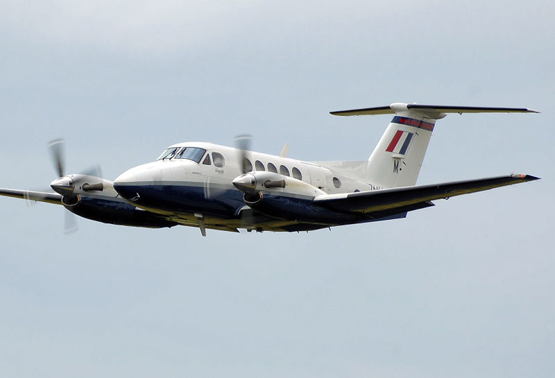 The 200 series proved so popular that Beechcraft began work on a successor, with the Beechcraft designation Model 300 and marketed as the "Super King Air 300". The B200's airframe was 'cleaned up' and even more powerful engines (PT6A-60A, rated at 1050 shp) installed in redesigned cowlings (known as "pitot cowlings" due to the reshaped engine air intakes), with MTOW increased to 14,000 lb (6,300 kg). A Model 200 (c/no. BB-343) was modified to develop the updated systems to be used on the new model and flew in this configuration on 6 October 1981. The first flight of the prototype Model 300 took place on 3 September 1983 and deliveries commenced the following year. Because not all nations would then allow an aircraft of this type to be certified at an MTOW greater than 12,500 lb (5,700 kg), the Model 300LW was also developed at the same time, limited to the lower MTOW. Nineteen examples of a special version of the Model 300 were delivered to the FAA in 1987 and 1988. The first two were conversions of standard Model 300s, while the remaining 17 were purpose-built; since they were delivered the FAA has used the fleet to check the extensive network of navaids in the USA. 200 and 300 Series King Airs are or have been used for similar duties in several other countries, including Australia, Germany, Hong Kong (a B200C used for navaid calibration was the first aircraft to land at the then-new Chek Lap Kok Airport in 1996), Sweden and Taiwan. By 1988, Beechcraft had begun work on the replacement for the 300. The fuselage of the 300 was stretched by nearly three feet with two extra cabin windows on each side and winglets added to the wingtips to create the Model B300, introduced in 1990 and initially marketed as the "Super King Air 350". MTOW was increased again to 15,000 lb (6,750 kg); as the same regulatory situation that led to the development of the 300LW still existed, that model continued to be produced until 1994. Like the 200 and B200 before it, a version with a large cargo door was developed, the Model B300C marketed as the "Super King Air 350C". The first deliveries of this model also took place in 1990. In 1998 the UltraQuiet Active Noise Cancelling system made by Ultra Electronics was added as standard equipment on all B300s. In October 2003 Beechcraft announced that it would deliver future B300 and B300C King Airs with the Rockwell Collins Proline 21 avionics suite. The B300 model is still in production today (now marketed simply as the "King Air 350", the "Super" being dropped in 1996 as mentioned earlier), while the B300C is available for order; four were built in 2007 and Hawker Beechcraft announced on 11 November 2007 that it would deliver five to Saudi Arabia in 2008 for use as Air Ambulances. On 13 June 2005 Beechcraft announced at the Paris Air Show that it was developing the "King Air 350ER" version of the B300, an equivalent to the earlier Model 200T and B200Ts of the 200 series. Changes include an increase of MTOW to 16,500 lb (7,430 kg), provision for surveillance equipment in a belly pod, the landing gear of the Beechcraft 1900 to handle the increased weight and provide ground clearance for the belly pod, and extra fuel capacity in the engine nacelles to increase range (because of the B300s winglets it was unfeasible to fit wingtip fuel tanks as found on the 200T and B200T). On 11 November 2007 Hawker Beechcraft announced that the 350ER had been certified by the FAA. In October 2008 Beechcraft announced the "King Air 350i", an updated version with improvements to the passenger cabin. The manufacturer claims that its noise level and overall comfort are now competitive with those of light jets. Military versionsOne special variant B300C was built for the Swiss Air Force, with a modified belly to allow aerial photography and a large observation window in the RH rear fuselage; and given a c/no. with a different prefix to other B300Cs. Hawker Pacific in Australia purchased eight B300s between 2003 and 2005 for lease to the Royal Australian Air Force. These were subsequently modified as navigator trainers. Hawker Pacific later leased another three B300s to the Australian Army, replacing B200 and B200C Model King Airs. The Japan Ground Self-Defense Force operates six B300s in the reconnaissance and communications roles under the designation LR-2. The aircraft were delivered between 1998 and 2004 and include the last B300 built without the Proline 21 avionics package (c/no. FL-382). Beechcraft announced on 6 March 2007 that the Iraqi Air Force had ordered five King Air 350ERs for delivery commencing late in 2007. Hawker Beechcraft exhibited a King Air 350ER at the 2007 Paris Air Show; and at the Royal International Air Tattoo the following month. Photos of the aircraft, actually a modified 2005-built B300, show that visual features of the King Air 350ER include a belly pod, and enlarged engine nacelles compared to the nacelles of standard B300 King Airs. Four 350ERs equipped for ISTAR missions over Afghanistan have been ordered for the Royal Air Force. This variant is called the Shadow R1 in RAF service. The Royal Bahamas Defence Force operates a solitary B300 on maritime patrol and reconnaissance duties. Modification and upgrade programsNumerous "after-market" modifications and upgrades are available for 200 and 300 Series King Airs. One company offers a Wing Front Spar Reinforcement Kit for 200 Series aircraft and a modification to replace the electro-mechanical landing gear retraction system of early-build aircraft with an electro-hydraulic system. Another company offers a modification for the entire King Air line that entails reworking and extending the entire nose to house a baggage compartment as well as the avionics normally found in the noses of King Air aircraft; while another offers winglets, similar to those of the B300, for 200 series and other 300 series King Airs. A modification to install a Forward looking infrared camera in an extended nose in B200 King Airs is ava