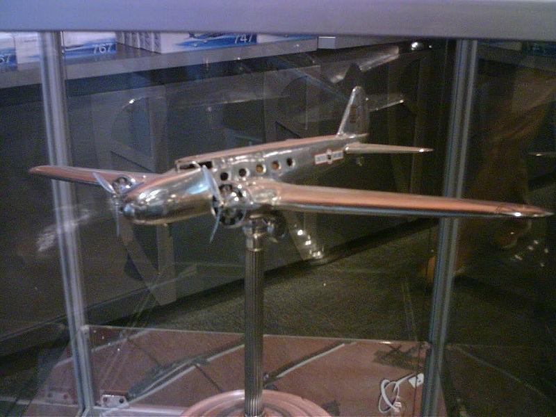 The Boeing Model 247 was an early United States airliner, considered the first such aircraft to fully incorporate advances such as all-metal (anodized aluminum) semi-monocoque construction, a fully cantilevered wing, wing flaps and retractable landing gear. Other advanced features included control-surface trim tabs, an autopilot, and deicing boots for the wings and tailplane. The 247 first flew on February 8, 1933, and entered service later that year. Subsequently, development in airliner design saw engines and airframes becoming larger, and four-engine designs emerged, but no significant changes to this basic formula appeared until cabin pressurization and high-altitude flight were introduced in the early 1940s with the first pressurized airliner, the 307 Stratoliner. Design and developmentBoeing had eclipsed other aviation manufacturers by introducing a host of aerodynamic and technical features into a commercial airliner. This advanced design which was a progression from earlier Monomail (Models 200, 221, 221A) and B-9 bomber designs, combined speed and safety. The Boeing 247 was faster than the U.S. premier fighter aircraft of its day, the Boeing P-12, which was an open-cockpit biplane. In addition, the 247 was the first twin-engine passenger transport able to fly on one engine. With controllable pitch propellers (standard equipment on the 247D), the 247 could maintain 11,500 ft at maximum gross takeoff weight. Its combination of features set the standard for the Douglas DC-1 and other airliners before World War II and was ordered "off the drawing board". Originally planned as a 14-passenger airliner powered by Pratt & Whitney R-1690 Hornet radial engines, the preliminary review of the design concept by United Airlines' pilots had resulted in a re-design to a smaller, less capable design configuration. Nonetheless, the 247 was a remarkable achievement and was the company's showcase exhibit at the 1933 Chicago World's Fair.