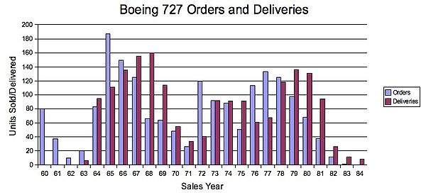 Sources: Boeing 727 Specifications, Boeing 727 Airport report Orders and deliveries