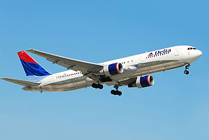 The Boeing 767 is a mid-size, wide-body twinjet airliner produced by Boeing Commercial Airplanes. Passenger versions of the 767 can carry between 181 and 375 passengers, and have a range of 5,200 to 6,590 nautical miles (9,400 to 12,200 km) depending on variant and seating configuration. The Boeing 767 has been produced in three fuselage lengths. The original 767-200 first entered into airline service in 1982, followed by the 767-300 in 1986, and the 767-400ER in 2000. Extended range versions of the original -200 and -300 models, the 767-200ER and 767-300ER, have been produced with added payload and operating distance capability. The 767-300F, a freighter version, entered service in 1995. The first wide-body twinjet produced by Boeing, the 767 was conceived and designed in tandem with the narrow-body Boeing 757 twinjet. Both airliners share design features and flight decks, enabling pilots to obtain a common type rating to operate the two aircraft. The 767 was the first Boeing wide-body airliner to enter service with a two-person crew flight deck, eliminating the need for a flight engineer. Following in-service indications of its twinjet design reliability, the 767 received regulatory approval allowing extended transoceanic operations beginning in 1985. Through the 1990s, the Boeing 767 became commonly used on medium long-haul routes, and the aircraft has ranked as the most commonly-used airliner for transatlantic flights between the United States and Europe. There have been over 1,000 767s ordered with over 900 delivered as of 2009. The -300/-300ER models are the most popular variants, accounting for approximately two-thirds of all 767s ordered. There were 862 767s in service with 48 different airlines as of December 2008. DevelopmentBackgroundIn 1972, following the introduction of the first generation Boeing 747, Douglas DC-10, and the Lockheed L-1011 TriStar wide-body airliners into passenger service, Boeing embarked on parallel development studies for two new airliners. Code-named 7X7 and 7N7, these studies aimed to take advantage of new materials and propulsion advances in the civil aerospace industry. The 7N7, which developed into the Boeing 757, was conceived as a narrow-body twinjet replacement for the Boeing 727. The 7X7 was intended to be a mid-size wide-body airliner slotted between the Boeing 707 and Douglas DC-10. With aging fleets of 707s needing replacement, the 7X7 would slot between the Boeing's narrow-body jetliners and the 747. Initially, the 7X7 studies focused on a trijet design, with possible configurations including overwing engines, a T-tail, among others. In 1976, a twinjet wide-body configuration, similar to the earlier Airbus A300B, became the preferred configuration, reflecting increased industry confidence in the reliability and economics of new generation turbofan engines. Airlines remained ambiguous in their requirements for the aircraft, which was roughly focused on the medium-haul, high-density market. In 1978, Boeing formally designated its new wide-body airliner as the 767, and the company planned to offer three variants: a 767-100 with 180 seats, a larger 767-200 with 210 seats, and a trijet 767MR/LR version with 200 seats intended for intercontinental routes. The 767MR/LR was eventually dropped in favor of standardizing around the twinjet configuration, and the 767-100 was ultimately not offered for sale, as its capacity was too close to the 757's. On July 14, 1978, the Boeing 767 was formally launched by United Airlines, which placed an order for 30 767-200s, followed later that year with orders from American Airlines and Delta Air Lines. Design effort