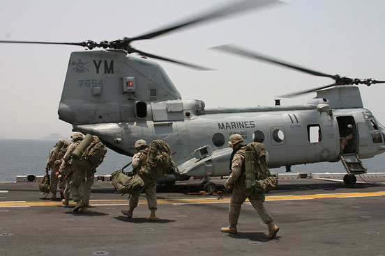 Known colloquially as the "Phrog", and used in all Marine combat and peacetime environments since its introduction. Still regularly flown by the Marine Corps, its longevity as a reliable airframe has led to such mantras as "phrogs phorever" and "never trust a helicopter under 30". CH-46E Sea Knights were used by the USMC during its 2003 invasion of Iraq. CH-46Es transported personnel, brought supplies to forward arming and refueling points (FARP), carried ammunition and various tasks. Marine CH-46Es and CH-53Es carried US Army Rangers and Special Operations troops in a mission to extract captured Army Private Jessica Lynch from an Iraqi hospital on 1 April 2003. While the United States Navy retired the airframe on September 24, 2004, replacing it with the MH-60S Knighthawk, the Marine Corps plans to maintain its fleet until the MV-22 is fully fielded. In March 2006 Marine Medium Helicopter Squadron 263 (HMM-263) was deactivated and redesignated VMM-263 to serve as the first MV-22 squadron. The replacement process is expected to continue through the other medium helicopter squadrons into 2014. CivilianThe Civilian version, the BV 107-II Vertol was developed prior to the military CH-46, and was operated commercially by New York Airways, Pan American World Airways and currently solely by Columbia Helicopters. As of December 15, 2006 Columbia Helicopters has purchased the Type certificate of the Model 107 from Boeing. Currently the company is seeking FAA issuance of a Production Certificate to produce parts with eventual issuance of a PC to produce aircraft. VariantsUS versions