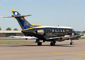 The British Aerospace BAe 125 is a twin-engined mid-size corporate jet, with newer variants now marketed as the Hawker 800. It was known as the Hawker Siddeley HS.125 until 1977. It is also used by the British Royal Air Force as a navigation trainer (as the Hawker Siddeley Dominie T1), and was used by the United States Air Force as a calibration aircraft (as the C-29).