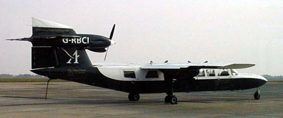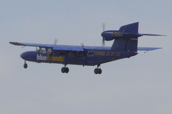 The Britten-Norman Trislander (more formally designated the BN-2A Mk III Trislander) is an 18-seat three-engined piston-powered civilian utility aircraft produced in the 1970s and early 1980s by Britten-Norman of Britain. The aircraft were produced on the Isle of Wight. They were also produced in Romania, and delivered via Belgium to Britain for their certification. The aircraft are known locally in the Channel Islands as "Joeys", and one Aurigny Air Services craft carries the registration G-JOEY. Design and developmentDesigned by John Britten and Desmond Norman, the Trislander is a further development of Britten-Norman's better-known Islander aircraft in order to give it a larger carrying capacity. In comparison with the Islander, the Trislander has a stretched fuselage, strengthened, fixed tricycle landing gear and a third engine. The third engine is a tractor engine mounted on the fuselage centre line atop the vertical stabilizer. The prototype of the Trislander, which was constructed from the original second Islander prototype, first flew on 11 September 1970. Initial production ceased in 1982 after 73 were ordered. As of January 2008, Britten-Norman is preparing a second production run of the Trislander. The Trislander has exceptional low speed handling characteristics, extended endurance, increased payload, low noise signature and economical operating costs. Capable of taking off from a 450 meter long landing strip, the Trislander can readily operate from unprepared surfaces. Variants