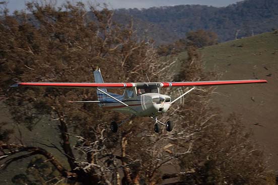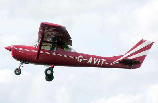 The final Cessna 150 model was the 150M. It introduced the “Commuter II” upgrade package that included many optional avionics and trim items as standard. The “M” also brought an increased fin height, by 6 inches (150 mm). This increased the rudder and fin area by 15% to improve crosswind handling. The “M” was produced for three years: 1975-77. Inertia reel restraints became available as an option with the 1975 model year. 1269 1975 model 150Ms were built. In 1976 the “M” gained a suite of electrical circuit breakers to replace the previous fuses used. It also was fitted with a fully-articulated pilot seat as standard equipment. 1399 were constructed. The 1977 model year was the last for the Cessna 150. It added only “pre-select” flaps, allowing the pilot to set the flaps to any setting and then leave the aircraft to move the flaps to that position, without the pilot holding the switch. Only 427 1977 model 150Ms were built as production shifted to the improved Cessna 152 in the early part of 1977. The many refinements incorporated into the 150 over the years had cost the aircraft a lot of useful load. The very first 150 weighed 962 lb (436 kg) empty, whereas the last “M Commuter II” had an empty weight of 1,129 lb (512 kg). This increase in empty weight of 167 lb (76 kg) was offset only by a gross weight increase of 100 lb (45 kg) in 1964. The 152 would bring a much-needed 70 lb (32 kg) increase in gross weight to 1,670 lb (760 kg). A total of 3097 “M” models were built during its three-year run. An additional 285 were built by Reims as the F150M and 141 FA150M Aerobats with the Rolls Royce Continental 0-240-A engine. Reims also built 75 A150Ls with F150M modifications. Flight CharacteristicsThe Cessna 150 is simple, robust and easy to fly. For these reasons it has become one of the world's most popular basic trainers. Cockpit visibility is generally good other than directly above the aircraft, where the view is blocked by the wing. This obstruction is of particular concern when, as is the case with most high-wing aircraft, the inside-turn wing blocks vision in the direction of a turn. As a partial remedy to this some 150's, including all Aerobats, feature a pair of overhead skylights. Due to its light weight and light wing loading of 10 lb/sq ft, the aircraft is sensitive to turbulence. Power-on and power-off stalls are easily controlled. Normal spin recovery techniques are highly effective. Modifications AvailableThere are hundreds of modifications available for the Cessna 150. Some of the most frequently installed include: