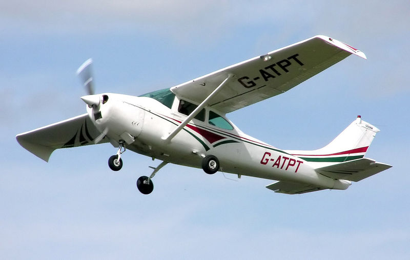 The Cessna 182, marketed under the name Skylane, is a four-seat, single-engine, light airplane. It has the option of adding two child seats, installed in the baggage area. Introduced in 1956, the 182 has been produced in a number of variants, including a version with retractable landing gear, and is the second most popular Cessna model, after the 172. DevelopmentThe Cessna 182 was introduced in 1956 as a tricycle gear variant of the 180. In 1957, the 182A variant was introduced along with the name Skylane. Later models have added more powerful engines and bigger windows. Cessna cites the 1990s resumption in producing general aviation aircraft such as this model due to change in U.S. liability laws. In 2005, Cessna began offering the Garmin G1000 glass cockpit as an optional upgrade to the Skylane. Subsequently the glass cockpit became standard equipment. DesignThe Cessna 182 is an all-metal (mostly aluminum alloy) aircraft, although some parts – such as engine cowling nosebowl and wingtips – are made of fiberglass or thermoplastic material. Its wing has the same planform as the smaller Cessna 172 and the larger 205/206 series; however, some wing details such as flap and aileron design are the same as the 172 and are not like the 205/206 components. Retractable GearThe retractable gear R182 and TR182 were offered from 1978 to 1986, without and with engine turbocharging respectively. The nomenclature is confusing, as smaller Cessna singles with optional retractable gear are called "Number"RG (eg 172RG, 177RG), and one sometimes reads or hears of "182RG" in error. However, Cessna called the R182 the "Skylane RG". The R182 and TR182 offer 10-15% improvement in climb and cruise speeds over their fixed gear counterparts (or, alternatively, 10-15% better gas mileage at the same speeds) at the cost of increased maintenance costs and decreased gear robustness. The 1978 R182, for example, has a sea level climb rate of 1140 fpm and cruising speed (75% BHP) at 7,500 feet (2,300 m) of 156 KTAS at standard temperature. The landing gear retraction system in the Skylane RG uses hydraulic actuators powered by an electrically-driven pump. The system includes a gear position warning that emits an intermittent tone through the cabin speaker when the gear is in the retracted position and either the throttle is reduced below approximately 12" MAP or the flaps are extended beyond 25 degrees. In the event of a hydraulic pump failure, the landing gear may be lowered using a hand pump to pressurize the hydraulic system. There is no alternative procedure for retracting the landing gear. Engines