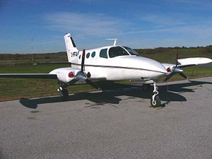 The Cessna 401 and 402 are series of 6 to 10 place light twin piston engine aircraft. This line was manufactured by Cessna from 1966 to 1985 under the name Utiliner and Businessliner. All seats are easily removable so that the aircraft can be used in an all-cargo configuration. Neither the Cessna 401 and 402 were pressurized, nor are they particularly fast for the installed horsepower. Instead Cessna intended them to be inexpensive to purchase and operate. DevelopmentThe Cessna 401 and 402 were developments of the Cessna 411. All 401s and 402s are powered by 300 hp (225 kW) turbocharged Continental engines with three-bladed, constant speed, fully feathering propellers. On later models cruise power was limited to 75% to reduce cabin noise. Some aircraft have a propeller synchrophaser to reduce cabin noise and vibration. The Cessna 401s, 402s, 402As and some 402Bs built from 1966 to 1971 had four small oval windows, which gave the aircraft a similar appearance to the pressurized Cessna 340. Starting half-way through the production of the Cessna 402B the window configuration was changed to the more distinctive five rectangular windows, an arrangement that was retained through the 402C model, until the completion of production in 1987. All 402Bs were equipped with tip-tanks. ModificationsIn 1969, American Jet Industries began work on a turboprop-powered conversion of the Cessna 402, named the Turbo Star 402, using Allison 250-B17 engines. The prototype flew on 10 June 1970. Further modifications providing increased fuel tankage, higher gross weight, and lower minimum control speed were carried out in 1974 and the modification was recertificated. Scenic Airlines of Las Vegas purchased the rights to the design in 1977. The Cessna 402C may be outfitted with vortex generators to increase maximum allowable takeoff weight to 7,210 lbs, with a zero-fuel weight of 6,750 lbs. Another modification for the 402C increases the maximum landing weight to 7,200 lbs, which allows commercial operators to fly with an increased payload on shorter routes. VariantsThis family of aircraft was built in several versions: