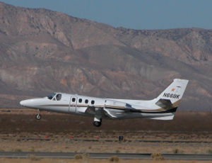 The Cessna 500 Citation I is a turbofan-powered small-sized business jet built by the Cessna Aircraft Company in Wichita, Kansas. The Citation brand of business jets encompasses several distinct "families" of aircraft, and the Citation I was the basis for the first of these families. This family includes the Citation I and the Citation I/SP. Design and developmentFanJet 500In October, 1968, Cessna announced plans to build an eight-place business jet that, unlike its competition, would be suitable for operations from shorter airfields, essentially aiming to compete in the light-to-medium twin turboprop market, rather than the existing business jet market. First flight of the prototype aircraft, then called the FanJet 500, took place a little under a year later, on September 15, 1969 Citation I seriesAfter a longer-than-expected development flight test program, during which the name Citation 500 was tried, and a number of changes to the design, the finished aircraft was debuted with the new name Citation (Model 500) and received its FAA certification in September, 1971. The aircraft was powered by two Pratt & Whitney Canada JT15D-1 turbofan engines. With fan engines, rather than turbojet engines such as powered the contemporary Learjet 25, and a straight, rather than swept wings, the Citation was over 120 knots (220 km/h) slower than the Lear 25 (max speed of 350 knots (650 km/h) compared with 473 knots (876 km/h) for the LJ25), which led to nicknames such as "Slowtation" and "Nearjet", and raised eyebrows in the aviation media.. The Citation I had a maximum take-off weight of 10,850 lb (4,920 kg), and a maximum of 8 people on board. In 1976, several product improvements were added to the aircraft in response to market pressures, including a longer span wing (47 ft 1 in vs 43 ft 11 in), higher maximum gross weight and thrust reversers, which made shorter landing fields available to customers. With these improvements came the name Citation I When production on the Citation I finally ended in 1985, 377 airframes had been built. The aircraft's position in the Citation product line was not filled until much later, with the introduction of the Cessna CitationJet. Like the Learjets, the Citation I required a crew of two. But since the Citation was intended to be marketed against twin turboprops, which can be flown by a single pilot, this restriction limited its intended market. Cessna's answer was the Model 501 Citation I/SP, with SP referring to its certified single-pilot capability. The aircraft was first delivered in early 1977, and a total of 312 aircraft were produced, and production also ended in 1985. New York Yankees catcher Thurman Munson was killed in his Citation I/SP on August 2, 1979 while practicing touch-and-go landings. Variants