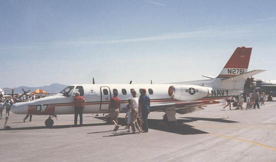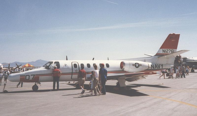 The Cessna Citation II was the first of the Model 550 series of Citation jets, which are light corporate jet built by Cessna. A direct development of the Citation I, the Citation II led to the later development of the Citation II/SP, the S550 Citation S/II, and the Citation Bravo. The Citation II was also used by the United States Navy under the designation T-47A for radar system training, while the OT-47B was procured by the United States Department of Defense for drug interdiction reconnaissance. Design and developmentCitation IIThe Citation II, Model 550, was a direct development from the Citation I. The earlier aircraft's success in the market led Cessna to believe there was demand for a larger aircraft that utilized the same design philosophy. The result was the Citation II, which had a maximum seating capacity of 10. In addition to more seats, the plane had more powerful JT15D4 engines, faster speeds and longer range. First flight was on January 31, 1977, and the aircraft was certified for two-pilot operation in March, 1978. A total of 603 aircraft were built before the Citation II was replaced by the Bravo in the production line. Citation II/SPLike the Citation I/SP, the Model 551 Citation II/SP as Cessna's means of competing in the turboprop market, which predominantly are operated single-pilot, so the aircraft was re-certified for single-pilot operations. T-47The Model 552 T-47A was the designation given by the U.S. Navy to the Citation II. Fifteen aircraft were purchased by the Navy to train its F-14 Tomcat Radar Intercept Officers. The T-47A was modified by incorporating JT15D5 engines, shortened wings, multiple radar consoles and the AN/APQ-159 radar system from the F-14. The T-47As were operated by Training Wing Six, which was based at Pensacola naval air station, Florida. All but one of the T-47As were destroyed in a hangar fire, and the Navy replaced them with upgraded T-39s Another version of the Model 552 was the OT-47B "Tracker", five of which were purchased by the Department of Defense for use in drug interdiction reconnaissance operations, based at Maxwell Air Force Base. The OT-47B utilized the F-16's APG-66(V) fire control radar system and the WF-360TL imaging system. Citation S/IIIn October, 1983, Cessna announced that they would be improving the aircraft, and the upgraded Model S550 Citation S/II first flew February 14, 1984. The aircraft utilized an improved version of the engine, JT15D4B, while the rest of the improvements were aerodynamic in nature. The wing was replaced with one using a supercritical airfoil, which had been developed for the Citation III. The S/II was certified, like the II/SP, with a single-pilot exemption. Once certification was in hand, the S/II replaced the II in the product line in late 1984. However, due to market demands, the II was returned to production in 1987. The S/II was discontinued after the 1988 production year. The II continued in production until 1994, and was replaced by the Bravo in 1997. Citation BravoBy 1994, the Citation II and S/II had been in production for 10 years, and it was time to integrate new technology. Cessna thus announced the development of the Citation Bravo. While it was built on the basic S/II airframe, the new aircraft was powered by Pratt & Whitney Canada PW530A engines. The main landing gear was replaced by the smoother-riding trailing link configuration adopted by other members of the Citation line, and the standard avionics suite was updated to the Honeywell Primus 1000 glass cockpit. The new aircraft first flew on April 25, 1995, but certification did not come for over a year, finally being granted in August, 1996. Production of the Bravo ceased in late 2006 after 337 had been produced. Variants