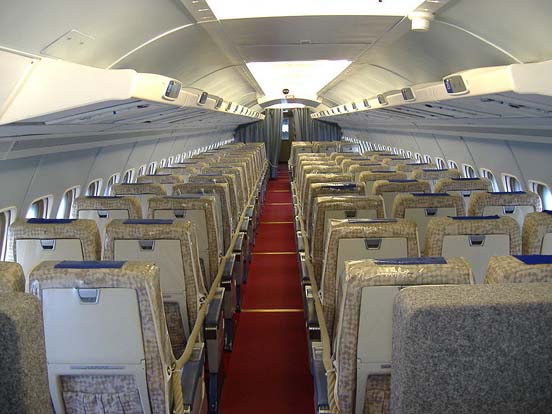The Convair 990 Coronado was a jet airliner produced by the Convair division of General Dynamics, a "stretched" version of their earlier Convair 880 produced in response to a request from American Airlines. The 990 was lengthened by 10 feet, which increased the number of passengers from between 88 and 110 in the 880, to between 96 and 121 (depending on the interior). This was still considerably fewer than the contemporary Boeing 707 (110 to 189) or Douglas DC-8 (105 to 173), although the 990 remained some 25 to 35 mph faster than either in cruise. Design and developmentAmerican Airlines requested that Convair design an aircraft suitable for coast-to-coast shuttle flights. The aircraft needed non-stop capability westbound from JFK to LAX, the direction it which it would encounter greatest headwinds. They also wanted somewhat larger passenger capacity than the 880, which was the smallest of the first-generation US jet-powered airliners. The 990 entered production in 1961. One interesting change from 880 was the addition of large anti-shock bodies on the upper wings (often referred to as 'Küchemann carrots', after their designer at Convair), to increase their critical Mach and reduce transonic drag. This allowed the heavier 990 to go slightly faster than the 880, cruising at about Mach 0.91, making it the fastest passenger jet when it was built. Originally there were plans to use the bulges as fuel tanks, but during test flights the extra weight caused the tanks to vibrate excessively. Instead the inner set of bumps also served a secondary role as fuel dump for the fuel tanks in the fuselage. The engines were also changed to the uprated General Electric CJ-805-23s, which were unique in that they used a fan stage at the rear of the engines, compared to the fan stage at the front of the engine as found in the Pratt & Whitney JT3D that powered the 990's competitors. The engine was a simplified civilian version of the J79, used in military fighters. Like the J79, the CJ-805 was very smoky. Although other early jet airliners were smoky, the 990 is especially remembered for it. There are stories of people calling fire departments after seeing a 990 fly over to report seeing an airplane on fire. Indeed, when viewed from an airport, where the point of view was looking the long way through the smoke trail, a 990 on final approach looked as if it were burning. Like the 880, 990s were later modified with a "raceway" added to the top of fuselage to hold the wiring for additional instrumentation. Operational historyEarly versions of the 990 did not meet the specifications promised American Airlines, who reduced their order as a result. The modified 990A was an engineered solution to speed related shortfalls, though the aircraft never did live up to its promise of coast to coast non stop capability westbound from JFK to LAX. American Airlines began to dispose of its 990As in 1967, having found the 707 and 720 more suited to its routes in spite of their larger capacity. The 990's market niche was soon to be destroyed entirely by the Boeing 727 and the Boeing 720 (a derivative of the 707), and by the time the line was shut down in 1963 only 37 990s had been produced, bringing General Dynamics' entire production of commercial jet airliners to 102 airframes. The failure of the Convair 880 and 990 to be accepted by the airlines led Convair to suffer, at the time, the largest corporate losses in history until then. Several 990s have survived. A former Swissair Convair 990 is on display in the Swiss transportation museum, the Verkehrshaus in Luzern, while two are owned by the Mojave Spaceport. Of these, one is on display at the airport's entrance, and the other is used for movie and television filming projects. Operators