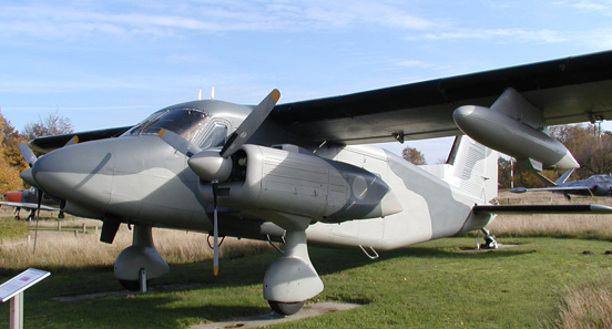 The Dornier Do 28 Skyservant is a twin-engine STOL utility aircraft, manufactured by Dornier Flugzeugbau GmbH. It served with the Luftwaffe and Marineflieger and other air forces around the world in the communications and utility role. Design and developmentThe Do 28 was developed from the single-engine Do 27 at the end of the 1950s. The design shared the high-wing cantilever layout and the lift augmentation devices of the Do 27, together with the rear fuselage which seated six passengers. The most defining feature of the new design was the unusual incorporation of two Lycoming engines, as well as the two main landing gear shock struts of the faired main landing gear attached to short pylons on either side of the forward fuselage. The internal space of the Do 28 was the same as the Do 27 and the company was given financial assistance from the German government to develop a larger STOL transport to carry up to 13 passengers. The type was designated the Do 28D and later named Skyservant. The Do 28D was a complete redesign and shared only the basic layout and wing construction of the earlier versions. The fuselage and engine nacelles were rectangular, unlike the rounded Do 28A/B. The aim was to develop a simple and rugged aircraft for use under arduous conditions, which could be easily maintained. With a crew of two pilots, the cabin accommodated up to 12 passengers; freight could be loaded easily through large double doors and with the seats removed the cabin gave 283 sq ft (26.3 m) of unobstructed space. The first flight of a Do 28D took place on 23 February 1966. A further variant of the Skyservant was the Do 28D-2/OU (Oil Unit). Two aircraft were fitted with radar and SLAR (Side-Looking Airborne Radar) to monitor oil pollution in the Baltic and North Seas. Painted in a white scheme, they were operated between 1984 and 1995 by MFG 5 of the Marineflieger, on behalf of the German Transport Ministry. These aircraft are easily recognised by the fuselage-mounted SLAR antenna and a radome under the cockpit. In 1991, both aircraft operated for several weeks in the Persian Gulf during the Gulf War under the control of the United Nations. These two aircraft were replaced by the Do 228 at the end of 1995. These Skyservants are preserved in the museum at Nordholz. Like the Do 27, the Dornier Do 28 possessed a high cruising speed, excellent low-speed handling characteristics, as well as very short takeoff and landing (STOL) performance. The Do 28 was readily accepted as a natural progression from its single-engine forebear. With many of the same STOL characteristics, most Do 28 production was destined for military customers, notably Germany, although a small number were in service for commercial operators as a rugged, low-cost utility transport. The design proved remarkably adaptable and was developed into a number of progressively improved variants, from the original D, through the D1 and D2 to the 128-2, introduced in 1980. Each variant introduced a number of detail changes that enhanced its already versatile performance capabilities. In 1997, the Hungarian engineer Andreas Gál developed a conversion based on a D-variant, that was intended to meet the requirements of skydivers. Instead of the Lycoming piston engines, Gál had two Walter M601-D2 turboprops, modified three-blade propellers and a skydiving kit installed by Aerotech Slovakia on seven planes. Although CAA, Hungary's aviation authorities, instantly certified the conversion, the JAA-certification could not be applied for before 2007, due to certification restrictions on the engines. In 2008, there have been three planes flying in Europe, all of them Hungarian registered, mainly at dropzones in Soest, Germany and Wiener Neustadt, Austria. Operational historyA total of 121 Dornier Do 28D-2s were built between 1971 and 1974 at Oberpfaffenhofen for the Bundeswehr (German Federal Armed Forces) where they replaced ageing Percival Pembrokes, they served until the introduction of the Dornier Do 228 in 1994, predominantly as a transportation and communications aircraft. 20 aircraft were transferred to the Marineflieger, 10 served from 1978 in the maritime reconnaissance role, additional underwing fuel tanks were fitted for extended endurance (see photo). The high noise levels and vibration in the cabin led to the type's replacement by the significantly quieter turboprop-powered Do 228. During the 20 years in German military service, only three aircraft were lost to accidents. The Do 28D was flown in 30 countries around the world and is still in service today. More than 150 aircraft were built. In the German Federal Armed Forces jargon, the Skyservant was called the "farmer's eagle" and was regarded as a reliable "workhorse". Turkey received two specially equipped SIGINT aircraft with the code name of 'Anadolou' as well as the normal transport version. Variants