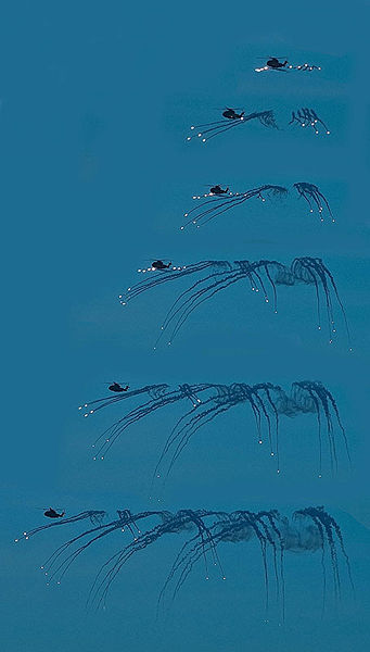 The AgustaWestland AW101 (EH101 until June 2007) is a medium-lift helicopter for military applications but also marketed for civil use. The helicopter was developed as a joint venture between Westland Aircraft in the UK and Agusta in Italy (now merged as AgustaWestland). The aircraft is manufactured at the AgustaWestland factories in Yeovil, England and Vergiate, Italy. The name Merlin is used for AW101s in British, Danish and Portuguese military service. DevelopmentIn spring 1977, the UK Ministry of Defence issued a requirement for an anti-submarine warfare (ASW) helicopter to replace the Royal Navy's Westland Sea Kings. Westland responded with a design designated the WG.34 that was then approved for development. Meanwhile, the Marina Militare (Italian Navy) was also seeking a replacement for its (Agusta-built) Sea Kings, leading Agusta to discussions with Westland about the possibility of a joint development. This culminated in the joint venture being finalised in November 1979 and a new company (EH Industries Limited [EHI], based in London) being formed in June the following year to manage the project. As the design studies progressed, EHI became aware of a broader market for an aircraft with the same capabilities as those required by the British and Italian navies. On 12 June 1981, the UK confirmed their participation, with an initial budget of £20 billion to develop nine pre-series examples. At the 1985 Paris Air Show at Le Bourget, Agusta showed a mock-up of a utility version of the new helicopter, leading to a more generalised design that could be customised. After a lengthy development, the first prototype flew on 9 October 1987. EHI was renamed AgustaWestland International Limited in January 2004 when parent companies merged. Consequently, in June 2007, the EH101 was re-branded as the AW101. DesignThe modular aluminium-lithium alloy fuselage structure is damage and crash resistant, with multiple primary and secondary load paths. Active vibration control of the structural response (ACSR) uses a vibration-cancelling technique to reduce the stress on the airframe. The AW101 is rated to operate in temperatures ranging from -40 to +50 °C. High flotation tyres permit operation from soft or rough terrain. The main rotor blades are a derivative of the BERP rotor blade design, which improves the aerodynamic efficiency at the blade tips, as well as reducing the blade's noise signature. The cockpit is fitted with armoured seats for the crew, and can withstand an impact velocity of over 10 m/s. Dual flight controls are provided, though the EH-101 can be flown by a single person. The pilot's instrument displays include six full colour high-definition screens and an optional mission display. A digital map and Forward-Looking Infrared system display can also be installed. PropulsionThe military version of the AW101 is powered by either three Rolls-Royce/Turbomeca RTM322 turboshafts (the same engines used in the UK's WAH-64 Apache) (UK, Japan, Denmark and Portugal), or three 1,491 kW General Electric CT7-6 turboshafts (Italy, Canada, Japan TMP). Engine inlet particle separator systems provide protection when operating in sandy environments. Each engine is supplied by a separate 1,074 litre self-sealing fuel tank using dual booster pumps. A fourth tank acts as a reservoir supply, topping up the main tanks during flight; while a fifth transfer tank can be added to increase range, as can airborne refuelling. The engines power an 18.59 metre diameter five-bladed main rotor. The rotor blades are constructed from carbon/glass with nomex honeycomb and rohacell foam, edged with titanium alloy. Computer control of the engines via the aircraft EECU's (electronic engine control unit) allows the AW101 to hover reliably in winds of over 80 km/h. Weapon and defensive systemsA chin FLIR is fitted to some variants. The AW101 (excluding the ASM MK1) is equipped with Chaff and flare dispensers, directed infrared countermeasures (infrared jammers), ESM (electronic support measures, in the form of RF [radio frequency] heads), and a laser detection and warning system. It has two hard points for weapon carriers, on which the HM Mk1 model can carry four Sting Ray torpedoes or Mk 11 Mod 3 depth charges, though at present cannot use the Sea Skua missile. The Mk1, Mk3 and 3a variants can mount General Purpose Machine Guns (GPMGs) in up to 5 locations in the main cabin pointing out of door and window apertures. Cargo systemsThe AW101's fuselage has a volume of 31.91 m3 and the cargo compartment is 6.5 m in length, 2.3 m wide and 1.91 m high. The military version of the AW101 can accommodate up to 24 seated or 45 standing combat troops and their equipment. Alternative loads include a medical team and 16 stretchers, and cargo pallets. The cabin floor and rear ramp are fitted with flush tie-down points, a semi-automatic cargo release unit (SACRU). The ramp (1.91x2.3 m) can take a 3,050 kg load, allowing it to carry vehicles such as Land Rovers. A cargo hook under the fuselage can carry external loads of 5,440 kg via the use of a SACRU (semi auto cargo release unit). A rescue hoist and a hover trim controller are fitted at the cargo door. AvionicsThe navigation system includes a GPS and inertial navigation system, VHF Omnidirectional Radio range (VOR) instrument landing system (ILS), tactical air navigation (TACAN) and automatic direction finding. The MK1 and MK3 are equipped with a DVS (Doppler velocity system) for when the exclusive use of the conventional pitot pressure instruments might be unreliable for gauging accurate airspeed. The AW101 is equipped with helicopter management, avionics and mission systems linked by two 1553B multiplex and ARINC 429 databuses. A Smiths Industries OMI SEP 20 automatic flight control system provides dual redundant digital control, giving autostabilisation and four-axis auto-pilot operation. Operational historyRoyal NavyThe RN's final order was for 44 ASW machines, originally designated