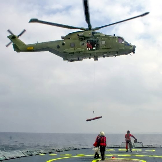 The first Italian Navy production helicopter (MM81480) was first flown on 4 October 1999 and was officially presented to the Press on 6 December 1999 at the Agusta factory. Deliveries to the Italian Navy started at the beginning of 2001 and were completed by 2006. Italian EH101s operate from major surface units, aircraft carriers and amphibious assault ships. Royal Danish Air ForceIn 2001, the Royal Danish Air Force announced the purchase of eight EH101s for SAR duties and six tactical troop transports. The last of the 14 EH101s was delivered March 1 2007 and the first SAR EH101s became operational in late April 2007. The Danish Mk 512s have a MTOW of 15,600 kg. In 2007, the British Ministry of Defence acquired the six troop transport EH101s from Denmark to alleviate a shortfall in British operational helicopters. In exchange, the British have ordered six new-build helicopters from AgustaWestland as replacements for the Royal Danish Air Force. On 28 January 2008, one Danish AW101 broke the drive shaft from one engine to the gear box and made an emergency landing at Billund Airport. Following this incident the Danish fleet was grounded as a safety precaution. The incident caused some national debate about the future of the EH101 in Danish service and whether it made sense to acquire different helicopters since the EH101 had very low availability (roughly 30%) due to mechanical issues. AgustaWestland, in turn, blamed the Danes for ordering spare parts very late and not keeping enough staff to properly service the helicopters. In April 2008, RDAF reported considerable improvements in operational availability (over 50%), citing improved service form AW (speedy delivery of spare parts) and increased proficiency of groundcrews. NorwayAW101 is a candidate for the Norwegian All Weather Search and Rescue Helicopter (NAWSARH) that is planned to replace the Westland Sea King Mk.43B of the Royal Norwegian Air Force in 2015. The other candidates for the NAWSARH contract of 10-12 helicopters are Bell Boeing V-22 Osprey, Eurocopter EC225, NHIndustries NH-90 and Sikorsky S-92. Portuguese Air ForceThe Portuguese Air Force has operated Merlins since 24 February 2005, in transport, search and rescue, combat search and rescue, fisheries surveillance and maritime surveillance missions. The 12 aircraft, in three versions, gradually replaced the Aérospatiale Puma in those roles. Portuguese Merlins are painted in a tactical green and brown camouflage. The main role of the Portuguese AW101 is search and rescue in Portugal's maritime zone. EH-101s are on constant alert at three bases: Montijo (near Lisbon), Lajes Field, Azores and Porto Santo Island. Japan Maritime Self-Defense ForceThe Japan Maritime Self-Defense Force ordered 14 aircraft in 2003 to use in both the MCM (Mine Counter-Measures) and transport roles. The MCH-101 and CH-101 will replace the S-80-M-1 (MH-53E) for MCM, and the Sikorsky S-61 in a support role for Japanese Antarctic observations. AlgeriaIn November 2007, Algeria signed a contract for six AW101 helicopters. The first aircraft will be delivered in 2009, with further orders possible. Saudi ArabiaIn mid-2008 it was revealed that a Saudi Arabian customer had ordered two VVIP AW101s. United StatesThe USMC has two AW101 VH-71 helicopters as part of its efforts to replace its Marine One helicopters. With the proposed elimination of further expenditures on the programme announced on 6 April 2009. Variants