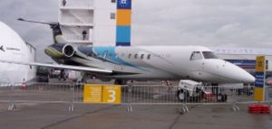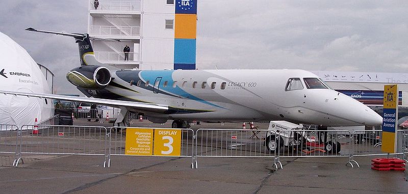 The Embraer Legacy 600 is a business jet derivative of the Embraer ERJ 145 family of commercial jet aircraft. Design and developmentThe Legacy 600 is based on the ERJ 145 model, but includes added range with extra fuel tanks in the tail and forward of the wing, added winglets and an extensive drag reduction. It is certified to 41,000-foot (12,000 m) altitude versus 37,000 feet (11,000 m) for the airline configuration. Launched in 2000 at the Farnborough Airshow, the Legacy carries 16 passengers for 3,050 nautical miles (5,650 km) or 8 passengers for 3,450 nautical miles (6,390 km). The Legacy family includes the Legacy Shuttle, which is an ERJ 135 with a 19-seat passenger cabin configuration as standard (it does not have the same range as the Legacy Executive / Legacy 600). The Legacy 600 competes on the upper end of the small to mid sized range of business jets. It has nearly the opposite design progression as the rival Canadair Challenger. The Legacy 600 was derived from the established ERJ family of regional jets, while the Canadair Regional Jet was developed by Bombardier from the Challenger business jet. Both lines of aircraft are competitors. Embraer has since launched lines of aircraft such as the Phenom 300 and the Lineage 1000 to compete with Bombardier in all markets.