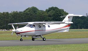 The Extra EA-400 is a six-seat single-engined monoplane produced by Extra Flugzeugbau GmbH. The EA-400 is powered by a liquid cooled Continental IO-550 turbocharged piston engine. Design and developmentStarted by Walter Extra, the company manufactures aerobatic airplanes almost exclusively with their latest products being the Extra EA-300 series. This changed with the introduction of the EA-400. It was a cross-country airplane with many exclusive features including carbon fiber construction, pressurized cabin, high strut-less wing, and seating for six. Despite the capabilities of the airplane, its $1 million dollar cost and a weak market saw slow sales. Specifications (Extra EA-400)Data from Extra EA-400 Standard Specification, Pilots Information Manual General characteristics