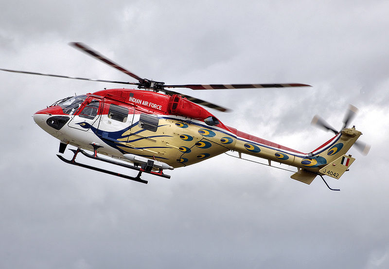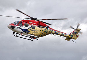 The HAL Dhruv (Sanskrit: ध्रुव, "Pole Star") is a multi-role helicopter developed and manufactured by India's Hindustan Aeronautics Limited (HAL). It is being supplied to the Indian Armed Forces, and a civilian variant is also available. The type was first exported to Nepal and Israel, and is on order by several other countries for both military and commercial uses. Specialized military variants include anti-submarine warfare and helicopter gunship versions. DevelopmentHindustan's Advanced Light Helicopter (ALH) programme was first announced in November 1984,the ALHwas designed with assistance from MBB in Germany. It followed a similar layout to that of the BK-117 although it is a larger aircraft. The twin 1000shp Turbomeca TM333-2B turboshafts are mounted above the cabin and drive a four-blade composite main rotor. The ALH makes use of an advanced integrated dynamic system which combines several rotor control features into an integrated module. The civil prototype ALH (Z-3182) first flew on 23 August 1992, at Bangalore, followed by a second civil aircraft (Z-3183), an Army version (Z-3268) and a navalised prototype (N.901) with Allied Signal CTS800 engines and a retractable tricycle undercarriage.Even after the first prototype flew in August 1992, problems arose due to the changing demands of the Indian military, funding, and contractual issues with Messerschmitt-Bölkow-Blohm, which was the consultant for design. Further delay was caused by U.S. sanctions after Indian nuclear tests in 1998, which embargoed the engine originally intended to power the helicopter. Then the helicopter used Turbomeca TM 333-2B2 turboshaft producing 746 kW (1000 SHP) each and an agreement was signed with Turbomeca to develop a more powerful engine. A Weapon System Integrated (WSI) Dhruv is under development for the Indian Military services. It will have stub wings fitted to carry up to eight anti-armour missiles, four air-to-air missiles or four rocket pods for 70mm and 68mm rockets. The WSI variant will also have FLIR (Forward Looking Infrared), CCD (Charge Coupled Device) camera and a target acquisition system with thermal sight and laser rangefinder. In December 2006, Nexter Systems (formerly Giat) was awarded a contract for the installation of the THL 20 20mm gun turret on the first 20 Indian forces Dhruv helicopters. The turret is armed with the M621 low-recoil cannon and is combined with a helmet-mounted sight. The helicopter was fitted with the more powerful Shakti engine developed jointly by HAL and Turbomeca, and now entering production. The first test flight of the Dhruv with the new engine and the weaponised version took place on 16 August 2007. The naval version of the helicopter is fitted with the Mihir dunking SONAR which is integrated with the Helicopter Fire Control System. Operational historyMilitary service