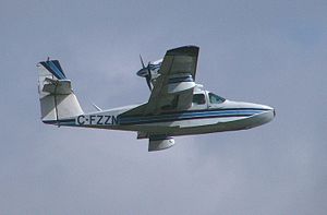 The Lake Buccaneer is an American four-seat light amphibious aircraft originally developed as the Colonial C-2 Skimmer, itself a development of the two-seat Colonial C-1 Skimmer. DevelopmentThe C-2 Skimmer was developed in the late 1940s as a four-seat variant of the earlier C-1 Skimmer. An amphibian, and a cantilever shoulder-wing monoplane with a single-step all metal hull with retractable tricycle landing gear. Powered by an Avco Lycoming piston engine in pusher configuration and pylon mounted above the hull. The manufacturing rights were acquired by the Lake Aircraft Corporation in October 1959 and the aircraft was built as the LA-4-200 Buccaneer. A six-seat development with a lengthened hull was named Renegade. Specifications (LA-4-200 Buccaneer)Data from The Illustrated Encyclopedia of Aircraft (Part Work 1982-1985). Orbis Publishing. pp. 2279-80. General characteristics