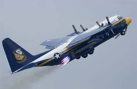 The Hercules holds the record for the largest and heaviest aircraft to land on an aircraft carrier. In October and November 1963, a USMC KC-130F (BuNo 149798), bailed to the US Naval Air Test Center, made 29 touch-and-go landings, 21 unarrested full-stop landings and 21 unassisted take-offs on the USS Forrestal at a number of different weights. The pilot, LT (later RADM) James Flatley III, USN, was awarded the Distinguished Flying Cross for his participation. The tests were highly successful, but the idea was considered too risky for routine "Carrier Onboard Delivery" (COD) operations. Instead, the C-2 Greyhound was developed as a dedicated COD aircraft. (The Hercules used in the test, most recently in service with Marine Aerial Refueler Squadron 352 (VMGR-352) until 2005, is now part of the collection of the National Museum of Naval Aviation at NAS Pensacola, Florida.) While the C-130 is involved in cargo and resupply operations daily, it has been a part of some notable offensive operations: The AC-130 also holds the record for the longest sustained flight by a C-130. From 22 October to 24 October 1997, two AC-130U gunships flew 36.0 hours nonstop from Hurlburt Field Florida to Taegu (Daegu) South Korea while being refueled 7 times by KC-135 tanker aircraft. This record flight shattered the previous record longest flight by over 10 hours while the 2 gunships took on 410,000 lb (190,000 kg) of fuel. With the exception of 'Eldorado Canyon', the U.S. raid on Libya, the gunship has been used in every U.S. combat operation since Vietnam. The MC-130 Combat Talon variant carries and deploys the among the largest conventional bombs in the world, the BLU-82 "Daisy Cutter" and GBU-43/B Massive Ordnance Air Blast bomb, also known as the MOAB. Daisy Cutters were used during the Vietnam War to clear landing zones for helicopters and to eliminate minefields and have recently even been proposed for anti-personnel use. The weight and size of the weapons make it impossible or impractical to load them on conventional bombers. The GBU-43/B MOAB is a successor to the BLU-82 and can perform the same function, as well as perform strike functions against hardened targets in a low air threat environment. In the Indo-Pakistani War of 1965, the Pakistan Air Force modified/improvised several aircraft for use as heavy bombers, and attacks were made on enemy bridges and troop concentrations with some notable successes. No aircraft were lost in the operations, though one was slightly damaged. It was also used in the 1976 Entebbe raid in which Israeli commando forces carried a surprise assault to rescue 103 passengers of an airliner hijacked by Palestinian and German terrorists at Entebbe Airport, Uganda. The rescue force — 200 soldiers, jeeps, and a black Mercedes-Benz (intended to resemble Ugandan Dictator Idi Amin's vehicle of state) — was flown 2,200 nmi (2,532 mi; 4,074 km) from Israel to Entebbe by five Israeli Air Force (IAF) Hercules aircraft without mid-air refueling (on the way back, the planes refueled in Nairobi, Kenya). During the Falklands War (Spanish: Guerra de las Malvinas) of 1982, Argentine Air Force C-130s undertook highly dangerous, daily re-supply night flights as blockade runners to the Argentine garrison on the Falkland Islands. They also performed daylight maritime survey flights. One was lost during the war. Argentina also operated two KC-130s tankers during the war, and these refueled both the Skyhawk and Navy Super Etendards which sank 6 British ships. The British also used their C-130s to support their logistical operations. During the Gulf War of 1991, the C-130 Hercules was used operationally by the US Air Force, US Navy and US Marine Corps, and the air forces of Australia, New Zealand, Saudi Arabia, South Korea and the UK. During the invasion of Afghanistan and in support of the International Security Assistance Force, the C-130 Hercules was used operationally by Australia, Belgium, Canada, France, Italy, the Netherlands, New Zealand, Norway, South Korea, Spain, the UK and the United States. During the 2003 invasion of Iraq, the C-130 Hercules was used operationally by Australia, the UK and the United States. After the initial invasion, C-130 operators as part of the Multinational force in Iraq used their C-130s to support their forces in Iraq. One RAF C-130 was shot down on 30 January 2005, when an Iraqi insurgent brought it down firing with a ZU-23 anti-aircraft artillery gun while the plane was flying at 164 ft (50 m) after it had dropped SAS special forces paratroopers. A prominent C-130T aircraft is Fat Albert, the support aircraft for the US Navy Blue Angels flight demonstration team. Although Fat Albert supports a Navy squadron, it is operated by the US Marine Corps (USMC) and its crew consists solely of USMC personnel. At some air shows featuring the team, Fat Albert takes part, performing flyovers and sometimes demonstrating its jet-assisted takeoff (JATO) capabilities. Civilian usesIn the late 1980s, 22 retired USAF C-130As were removed from storage at Davis-Monthan Air Force Base and transferred to the U.S. Forest Service who then sold them to six private companies to be converted into airtankers for use in fighting wildfires (see U.S. Forest Service airtanker scandal). After one of these aircraft crashed due to wing separation in flight as a result of fatigue stress cracking, the entire fleet of C-130A airtankers was permanently grounded in 2004. (See 2002 airtanker crashes.) On one occasion, an RAF C-130 was used to transport a Sumatran Woolly Rhino from Indonesia to Port Lymne Zoo in East Sussex, UK to take part in a breeding program. VariantsMilitary variantsSignificant military variants of the C-130 include: