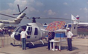 The Mil Mi-34 (NATO reporting name "Hermit") is a two/four seat light instructional and competition helicopter. It was first flown in 1986 and entered production in 1989. It is capable of performing aerobatic maneuvers, including rolls and loops.