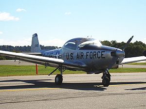 The Navion is a United States single-engine, four-seat aircraft originally designed and built by North American Aviation in the 1940s. It was later built by Ryan Aeronautical Company and the Tubular Steel Corporation (TUSCO). Design and developmentThe Navion was originally designed at the end of World War II by North American Aviation as the NA-143 (but produced under the NA-145 designation). It was designed for the civilian market but also attracted the interest of the United States Army Air Forces. The Army Air Force ordered 83 of the NA-154 version, designated the L-17A, to be used as a liaison aircraft, personnel and cargo carrier, and trainer for the university-based Reserve Officers Training Corps flight training program, 35 of which were later converted to L-17C standard by the Schweizer Aircraft Company by fitting them with L-17B model features such as an auxiliary fuel tank. Ryan Aeronautical Company acquired the design in 1948, and built approximately 1,200 examples over the following three years. Ryan designated the aircraft the Navion A with a 205 hp (153 kW) Continental E-185-3 or -9 and, later, the Navion B with 260 hp (194 kW) engines of either the Lycoming GO-435-C2, or optionally the Continental IO-470 engine. The Navion As became the basis for the military L-17B. A single prototype Navion Model 72 was developed to compete for the US Air Force trainer aircraft procurement that was awarded to Beechcraft and resulted in the T-34. This Model 72 was not mass-produced. TUSCO took over production of the Navion in the mid 1950s, manufacturing D, E and F models with a variety of enhancements including tip tanks and flush rivets. Navion Rangemaster aircraft were manufactured from 1961 to 1976. Their production followed that of earlier canopy-model Navion aircraft. In addition to the 39.5-gallon (150 liter) main fuel tanks, the Rangemasters added tip tanks with 34 gallons (128 l) each. The total fuel capacity of 107.5 gallons (407 l) gave these Navions the range for which they are named. TUSCO also introduced the Navion Rangemaster G model in 1960, which incorporated all previous advancements, replaced the Navion's sliding canopy with a side door, enlarged the cabin, created five separate seats, and standardized use of tiptanks and larger, late-model Continental engines. An H Model was produced as well, very nearly the same as the G Model except for a few minor enhancements. The last few Navions were manufactured (all H Models) by Navion Aircraft Company during a short production run ending in 1976 during one of several attempts to restore the airplane to commercial viability. Operational historyPre-World War II, light civilian aircraft such as the Piper J-3 Cub and Aeronca Champion typically were made of wood or steel-tube fuselages with wooden wings. These pre-war designs were also marketed after the war, but did not sell well. The Navion was envisioned as an aircraft that would perfectly match the expected postwar boom in civilian aviation, since it was designed along the general lines of, and by the same company which produced the P-51 Mustang, generally regarded as the best Allied fighter aircraft. Republic offered an amphibious aircraft, the Seabee, Cessna offered the 195, and Beechcraft offered by far the most successful type Bonanza, which remains in production in 2009. All of these aircraft were significantly more advanced than prewar civilian aircraft and they set the stage for aircraft built from aluminum sheets riveted to aluminum formers. It was thought that wartime pilots would come home and continue flying with their families and friends under more peaceful conditions, but the postwar boom in civilian aviation did not materialize to the extent the manufacturers envisioned. Sales of the Navion were helped by the visibility of several celebrities who flew them, including Veronica Lake, Arthur Godfrey, Mickey Rooney and Bill Cullen. Retired Utah Senator Jake Garn is a current Navion owner. Present dayAs of 2009, many Navions are still flying and there is an active Navion owners community. The American Navion Society, formed in 1960, provides information to help Navion owners maintain and fly their airplanes, and organizes annual conventions and other social events for Navion owners.Another more recently formed group, Navion Skies, provides additional support. There are no two Navions alike, in part because numerous companies produced the airplane in different parts of the country, in part due to its long service history and many approved modifications, and because without the continuous manufacturing production and support of these airplanes for most of the last 40 to 50 years, owners and third-party organizations have successfully sought numerous improvements to the aircraft on their own via FAA field approval and supplemental type certificates. The airplane has been repeatedly modified with numerous larger powerplants including the latest aircraft piston engine designs available. One Navion was fitted with a Czech built Walter turboprop allowing the airplane to climb in excess of 5,000 ft per minute. A pair of highly-modified Navions were flown by Princeton University as the Variable=Response Research Aircraft (VRA) and the Avionics Research Aircraft (ARA). The VRA was given a pair of vertical side-force-generating surfaces mounted midway between wing roots and tips and a digital fly-by-wire (DFBW) control system, first installed in 1978, that parallels the standard Navion's mechanical control system and the fast-acting wing flaps that produce negative as well as positive lift. With these, the VRA can simulate the motions of other aircraft types through independent, closed-loop control of all the forces and moments acting on the airplane. Having completed over 20 years of research at Princeton University's Flight Research Laboratory, the VRA and its sister ship, the Avionics Research Aircraft (which is virtually identical to the VRA but does not have side-force panel