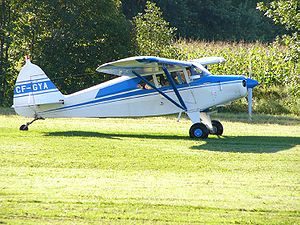 The PA-20 Pacer is a four-place, strut braced, high-wing light aircraft that was built by Piper Aircraft in the post-World War II period. The Pacer was essentially a four-place version of the two-place PA-17 Vagabond light aircraft. It features a steel tube fuselage and an aluminum frame wing, covered with fabric, much like Piper's most famous aircraft, the Cub and Super Cub. An aircraft prized for its ruggedness, spacious cabin, and, for its time, impressive speed, many Pacers continue to fly today. Factory installed 125 hp (93 kW), 135 hp (100 kW) and 150 hp (112 kW) engine options were available and 160 hp (120 kW) as well as 180 hp (135 kW) engine after-market conversions are an option. Piper PA-22 Tri-PacerThe Pacer was originally designed as a tailwheel aircraft and thus had somewhat limited forward visibility on the ground and more demanding ground-handling characteristics. To help introduce more pilots to easier, safer flying, in 1953 the PA-20 was redesigned and offered as the PA-22 Tri-Pacer with a nosewheel in place of the tailwheel landing gear. Additionally, the Tri-Pacer offered higher-powered engine options in the form of 150 hp (112 kW) and 160 HP (120 kW) engines, whereas the largest engine available to the original Pacer had an output of 135 hp (100 kW). At the time the tricycle undercarriage became a popular preference and 1953 saw the PA-22 Tri-Pacer outsell the Pacer by a ratio of six to one. In 1959 and 1960 Piper offered a cheaper, less well-equipped version of the Tri-Pacer with a 150 HP (112 kW) Lycoming O-320 designated the PA-22-150 Caribbean. Over 8000 Tri-Pacers were produced between 1953 and 1960 when production ended, with over 2000 still registered with the FAA in 2006. An unusual feature of the Tri-Pacer is the incorporation of bungee linked ailerons and rudder. Beside simplifying the coordination of in-flight manoeuvres, this system which can easily be overcome by the pilot as required, allowed the installation of a simplified form of autopilot called by Piper:- Auto-control. A small number of PA-22s have been converted to taildragger configuration, resulting in an aircraft that is very similar to a PA-20 Pacer, but retains the model refinements and features of the PA-22. These conversions are often referred to by owners as PA-22/20s and are often listed in classified aircraft ads as such, although officially such converted aircraft continue to be designated by the FAA as PA-22 Tri-Pacers. AestheticsWhile the original PA-20 Pacer is generally regarded as an aesthetically attractive aircraft, with classic, "traditional" lines, some pilots and aircraft enthusiasts find the PA-22 Tri-Pacer a less attractive-looking variant. Due to the geometry of the nosewheel installation it is sometimes referred as the "Flying Milk Stool". Both the PA-20 and PA-22s have their supporters and enthusiasts. Miss PearlMiss Pearl (N3383A) is a PA-22-135 taildragger which was converted and restored by its owner, Frank Sperandeo III. This aircraft is arguably the most well-known of its type and has won more than 50 awards. . The aircraft was also featured in the May 2006 edition of General Aviation News. Piper PA-22-108 ColtA trainer version of the PA-22 Tri-Pacer was designed and designated the PA-22-108 Colt. It was intended to compete directly with other popular trainers of the day, such as the Cessna 150 and was powered by a 108 hp (80 kW) Lycoming O-235. The Colt was available 1961-1964. The Colt is essentially a PA22 Tri-Pacer with the rear seats and windows removed, only one fuel tank in the left wing, no flaps and other detail changes that were implemented to reduce cost and complexity. An auxiliary fuel tank was available, of the same 18 US gallon capacity as the main tank, that could be installed in the right wing. Like the earlier Vagabond, the Colt features side-by-side seating for two, however the Vagabond has stick controls and the Colt has control wheels. A few Colts have also been converted to tailwheel configuration, although this is not as popular as converting Tri-Pacers. Production of the Vagabond, Pacer, Tri-Pacer and Colt was completed by the early 1960s and they were superseded by the PA-28 Cherokee line of aircraft. Type Club SupportThe Pacer, Tri-Pacer, Colt and their variants are supported by a very active aircraft type club, The Shortwing Piper Club. Specifications (PA-22-160 Tri-Pacer)General characteristics
