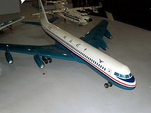 The Shanghai Y-10 was a four engined commercial passenger jet aircraft developed in the 1970s by Shanghai Aircraft Manufacture Factory (now known as Shanghai Aviation Industrial Company, or SAIC). The Y-10 designation stands for Yunshuji ("transport") model 10. There are rumors that the Y-10 was a reverse-engineered design of the Boeing 707 Model 120 with some minor differences, while in other sources, the designers and the personnel of Boeing denied that the Y-10 was the copy of its Boeing 707, and claim It was an indigenous design. After a thaw in relations with the West in 1972, China had acquired a Boeing 707 fleet but decided to forge ahead with its own jetliner that was free of dependence on foreign parts, except for the American engine. The aircraft used Pratt & Whitney JT3D-7 turbofan engines, which were spares belonging to CAAC's small fleet of Boeing 707 aircraft. Shanghai had intended to use a Chinese-built Shanghai WS8 turbofan, but the Pratt & Whitney engine was selected before the WS8 could reach certification. The plane carried 178 in high-density, 149 in economy, or 124 in mixed-class. The flight deck had room for five crewmembers: pilot, co-pilot, flight engineer, navigator, and radio operator. HistoryDevelopment work began in August, 1970 for Civil Aviation Administration of China (CAAC). The plane was intended to serve as a demonstrator and help the Chinese industry obtain experience in large aircraft design and flight testing. The Y-10 development costs totalled 537.7 million yuan. The Chinese government prided itself on the program, citing a foreign press report that said, "After developing this kind of highly complex technology, one could no longer regard China as a backward country." However, the project was heavily tainted by politics from the beginning because it was spearheaded by Wang Hongwen, one of the Gang of Four. It's worth noting that the strategic vision of an independently developed large transport plane had long been voiced by Mao Zedong and, in 2006, a similar project with updated design goals made its way into the Eleventh Five Year Plan, a periodic strategic socioeconomical development plan from the Chinese government. Only two examples were built. The first prototype (01) was used for static testing. A second prototype (02) was used for flight testing. The plane first flew on September 26, 1980. Until its retirement in 1984 it made 130 flights with 170 hours of flying time, and visited Beijing, Harbin, Urumqi, Zhengzhou, Hefei, Guangzhou, Kunming, and Chengdu. It also flew seven times to Lhasa. However, by the time the prototype was first flown, debate about its viability surfaced. The Y-10 was based on a design that was already 30 years old. It was rumored that CAAC, which already owned a modest Western fleet, would not purchase the plane. China was beginning to embrace trade with the West, and some saw the isolationist design as an inefficient throwback to Maoism. Furthermore, China in the early reform era was ruled by rehabilitated cadres previously persecuted in the Cultural Revolution by Wang Hongwen, the project initiator, resulting in the cancellation of the project in 1983, officially due to cost and market concerns. In fact, during its maiden flights, no governmental officials attended the ceremonies for fear of the connection to Wang Hongwen and the Gang of Four. By 1985, SAMF had been granted production licensing for the McDonnell Douglas MD-80 and shifted all efforts towards that program. Specifications (Y-10)General characteristics