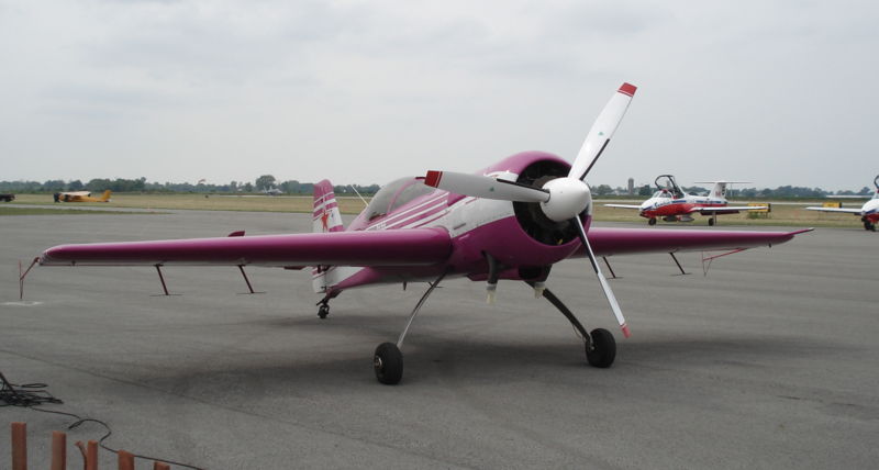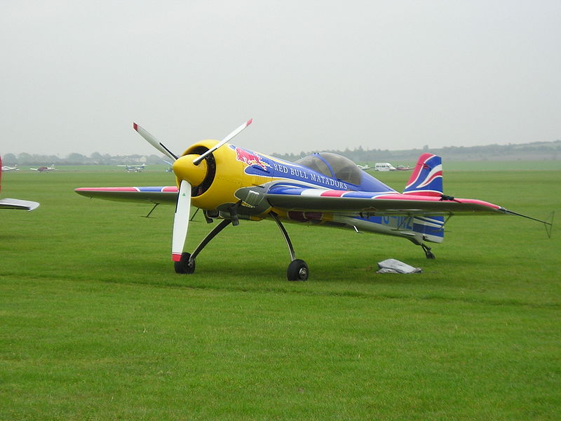 Wikipedia, The Sukhoi Su-26 is a single-seater aerobatics plane from the former Soviet Union, powered by a single radial reciprocating engine. The Su-26 has mid-mounted straight wings and fixed landing gear, the main gear mounted on a solid titanium arc. The Sukhoi Su-26 made its first flight in June 1984, the original four having a two-bladed prop. The production switched to the Su-26M, with refined tail surfaces and a 3-bladed Hoffman prop. Further refinements were made, and the model won both the men's and women's team prizes at the 1986 World Aerobatics Championships. The modified Su-26M3 with the new M9F 430-hp engine dominated the 2003 and 2005 Aerobatic World Championships as well as the 2004 European Championships. It was exported to Argentina in the 1990s. Specifications (Su-26)Data from