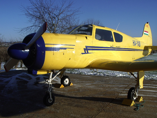 The Yakovlev Yak-18T is a four-place, fully aerobatic utility aircraft. Introduced to train Aeroflot pilots, it has recently gained some popularity as a sportplane in both the East and the West. It is powered by a 268-298 kW (360-400 hp) Vedeneyev M14P radial engine, and is designed for stresses of +6.4/-3.2 g. Design and developmentBased on the Yak-18 series of two seat trainers that first flew in 1946, the Yak-18T was the last production model. A considerable number of design and engineering changes took place including a larger cabin with seating for four, tricycle undercarriage (single seat Yak-18PMs had tricycle undercarriage also), as well as the 265 kW (355 hp) Vedneyev M14 nine cylinder radial engine being installed. Compared with other four-seat light aircraft such as the Cessna 172 or the Piper PA-28, the Yak-18T is only a little wider and longer but it is much heavier and is equipped with a considerably more powerful engine. The Yak-18T is perhaps better compared with the Piper Saratoga which has two extra seats but which has a similar maximum weight, together with a retractable undercarriage and a similarly powerful engine. The Yak-18T is, however, distinguished by its strong construction, aerobatic capability and docile yet responsive handling characteristics. The Yak-18T prototype had its first flight in mid-1967 and subsequently the type was placed in series production in Smolensk. Operational historyThe Yak-18T went on to become the standard basic trainer with Aeroflot flight schools, while small numbers also entered service with the Soviet Air Force as liaison and communications aircraft. After approximately 700 were built, many for Aeroflot, production ceased in the late 1980s. In 1993, the Smolensk Aircraft Factory put the -18T back into production after receiving a number of new contracts, including 20 for the Philippine Air Force. A number of civilian-licenced Yak-18Ts have also found their way into the west. Currently, Technoavia offers the SM94, its own development of the Yak-18T featuring curved front glass, larger capacity fuel tanks and choice of avionics package, but production is dependent on orders being placed. OperatorsSpecifications (Yak-18T)Data from Richard Goode Aerobatics; Yak UK; Unofficial translation of Flight Operations Manual. General characteristics