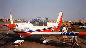The Zlin Z 42 is a single-engine two-seat Czechoslovakian trainer aircraft manufactured by Moravan Otrokovice. A developed version, the Z 142, is the most popular aircraft variant in the manufacturer's aircraft line. Design and developmentThe aircraft were built by Moravan Aviation, founded in 1934 by Tomas Bata in the Czech Republic. As a follow-on and replacement for the successful Zlin Trener series of tandem aerobatic trainers, Morovan developed a new family of light aircraft, featuring a side-by-side layout and comprising a two seat trainer, the Zlín Z 42 and a four seat trainer/tourer aircraft, the Zlín Z 43. The Z 42 first flew on 17 October 1967, achieving airworthiness certification on 7 September 1970. The aircraft fuselage center section is of welded steel tube, covered with sheet metal and fiberglass panels. The tailcone is of monocoque construction. The empennage is of sheet metal, and incorporates an all-flying tail. The two-spar wings are of all-metal construction. The tricycle landing gear is fixed, with a steerable nose wheel. Designed for aerobatics instruction, it was certified to +6.0 and -4.0 limit maneuvering load factors, and was equipped with full inverted fuel and oil systems permitting extended inverted flight. The Z 42 is powered by a Walter inverted six-cylinder engine rated at 134 kW (180 hp). The revised Zlín Z 42M flew in November 1972, with a revised tail taken from the Z 43, and a Constant speed propeller replacing the variable pitch propellor (where the propellor pitch is controlled by the pilot) of the original Z 42. When early Z 42s were refitted with the new propellor, they were redesignated Z 42 MU. Development continued, with the Zlin Z 142 featuring a slightly enlarged two seat airframe based on that of the Z 42 and the more powerful (157 kW (210 hp)) Walter (now LOM) M 337 fuel-injected inverted 6 cylinder, supercharged air-cooled engine of the Z 43 replacing the unsupercharged M 137 engine of the Z 42. The prototype Z-142 first flew on 29 December 1978. In the late 1980s further development work was initiated. The inverted inline engine was replaced with a four-cylinder horizontally-opposed Lycoming IO-360 engine. This variant is designated the Z 242, and is immediately distinguishable by its relatively wide cowling which houses the flat-four engine. Operational historyThe Z 42 variants are used for basic and intermediate VFR flight training, for basic aerobatics training, for night and instrument flight training, and for glider towing. The aircraft were largely used in former COMECON countries for air club and basic air force training. It was also used by the air forces of Algeria, Mexico and Slovenia. There have been wing difficulties resulting in restriction of permitted aerobatic flight time for original aircraft. The factory offers a retrofit package of replacement wings and an AMU-1 fatigue monitoring system, which extends overall airframe life to 5 500 hours, all of which may be aerobatic. Use by LTTETwo Z-142s were used by the Liberation Tigers of Tamil Eelam in bombing sorties on the Sri Lankan airforce bases in Sri Lanka in 2007. In October 2008 the Zlins were also used in an attack on a military base of the Sri Lanka Army, and a power station in the outskirts of the city of Colombo, Sri Lanka. Aerobatics and maneuversThe Zlin Z 142 was not designed as a fully-aerobatic plane, but it is equipped for inverted flying, and can be used for aerobatic instruction. The following figures are allowed: