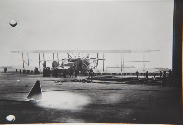 Design and developmentThe R.I was unusual for a multi-engined aircraft in that rather than connecting propellers directly to the engines and mounting the engines in nacelles, the R.I carried all its engines within the fuselage and turned its propellers via a system of drive shafts. A single prototype was completed and flew in 1916. Initial flights were quite successful, the aircraft being considered very manoeuvrable, but on 3 September 1918, a newly assembled propeller, which had not been given sufficient time for glue to cure, disintegrated. The vibrations resulting from that failure caused the complex transmissions and shafting connecting all four engines to both propellers to tear loose, which then cut a center section strut, resulting in the breakup of the aircraft, killing all seven crew on board. Of the seven further AEG R.1 aircraft planned or under production when the war ended, (R.21, R.22, R.59, R.60, R.61, R.62, R.63 and R.64), only R.21 was finished and R.22 partially complete. SpecificationsGeneral characteristics