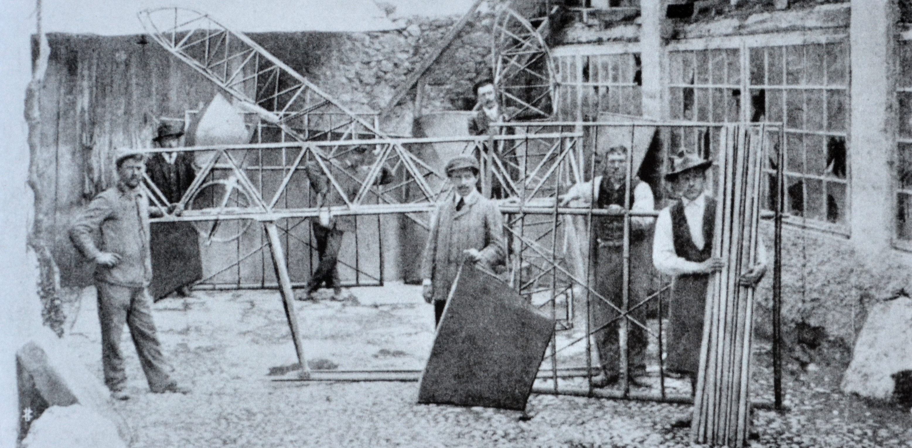 DevelopmentGianni Caproni had begun his experiments in the field of aviation in 1908. In that year, together with his Romanianfriend and colleague Henri Coandă, he designed and built a biplane glider whose flights took place in the surroundings of Blaumal (in the Ardennes) and were largely successful, leading Caproni to carry on his aeronautical studies. In 1909 he met several aviators and aircraft designers in Paris, where he also witnessed the flights of some of the most recent aeroplanes. While still in France, Caproni began designing his first engined aircraft. In June 1909, after going back to Italy, he made an attempt to collect the money he needed to build the machine in Alessandria; however, he didn’t manage to convince the local investors of the worthiness of his projects. It was only in December, after spending a period of time in Belgium in order to complete his specialization in electrical engineering, that Caproni went back to his hometown, Arco, and was finally able to gather some collaborators, thanks to whom he would begin the construction of the experimental biplane that was going to become known as the Caproni Ca.1. Between December 1909 and the first few months of 1910, Caproni worked on the construction of the Ca.1 in an improvised workshop which he had set up inside a warehouse with the help of three carpenters. However, because of the lack of any surface suitable for having an aircraft take off and land in Trentino, Caproni decided to move to Lombardy in order to carry out the test flights. He thus joined his elder brother, Federico (who had graduated from the Bocconi University of Milan shortly before), and asked the Arma del Genio (the military engineering corps of the Esercito Italiano) for permission to settle at the cascina of Malpensa, in semi-desert area which at the time was in use as a training ground for the cavalry. The permission was granted and so, after building a hangar close to the cascina, on April 5, 1910, the two Caproni brothers and their collaborators, Ernesto «Ernestin» Gaias and Ernesto «Erneston» Contrini from Arco, moved to Malpensa. The parts of the Ca.1 that had already been assembled were transported from Arco to Ala on carriages, and then reached Gallarate by train; their journey started on April 8 and ended in Malpensa on 11 April. The four men were going to spend one year living in primitive accommodation and working in the hangar, which also served as a workshop. There were no comforts and the project of building and flying the Ca.1 was very demanding from both a technical and financial point of view. However, Caproni was later to think back to the first period he spent in Maplensa as a time of happiness and peace of mind. The aircraft was assembled in a few weeks, but Caproni still had to find an engine and a pilot. He tried to solve the first problem by buying an engine built by the recently founded Miller company of Turin; the engine wasn’t expensive and the Trentine engineer was glad to use an Italian-built piece of technology, because of his irredentist sentiments; however, the four-cylinder W engine proved quite unreliable and was apparently unable to run smoothly for more than a few minutes at a time. As far as the second problem was concerned, Caproni decided to have Ugo Tabacchi, a Veronese-born Trentine chauffeur who had recently joined Caproni’s team, pilot the maiden flight of his aircraft. Although some licensed pilots (mostly trained on Wright aircraft) were already available in Italy, Caproni couldn’t afford to hire any of them. The aircraft was ready for the first test flight in May 1910. DesignThe Caproni Ca.1 was a light single-engine biplane featuring an uncovered rectangular truss as a fuselage, two unstaggeredmainplanes of equal span, a biplane tailplane and a twin-propeller pulling configuration. The fuselage was composed of a long rectangular truss; the structure was of honeyberry wood with aluminum connections, allowing for a light and flexible construction, comparatively robust and easy to fix in case of accidents. This technique was, however, expensive and therefore it was abandoned in subsequent designs. The fuselage was connected to the wings in proximity of the nose of the aircraft, while the empennage was located at its rear end. Both the horizontal stabilizer and the vertical stabilizer were composed of twin aerodynamic surfaces. The wings were fitted with ailerons and had a conventional structure, with tubular plywood spars and wooden ribs supporting a fabric covering. Between the interplane struts that connected the two wings (which, together with wires, provided structural rigidity) were some vertical surfaces that improved the stability of the aircraft. The tail assembly was composed of two vertical surfaces which acted as rudders and as stabilizers and of two horizontal surfaces whose fixed portion had a lifting and a stabilizing function, while a movable section acted as an elevator. The latter was controlled by the pilot, thanks to a yoke. The wings were fitted with a patented device that allowed its angle of incidence to vary, in order to experiment with different aerodynamic conditions; the tailplanes were fitted with a similar device in order to compensate for the attitude changes caused by the adjustment of the wings. The fixed landing gear was composed of five large-diameter wheels of which two were located below the central section of the lower wing, one below each wingtip and one supporting the tail. Two smaller wheels, mounted at the forward extremity of an extension of the main landing gear structure, were meant to prevent the aircraft from overturning. The four-cylinder Miller fan engine drove two wooden two-blade counter-rotating propellers by means of two roller chains. A safety device would block both propellers in case of the failure of one of the chains. The blade pitch could be adjusted while the aircraft was on the ground. Test flightsThe prairie around Malpensa was a
