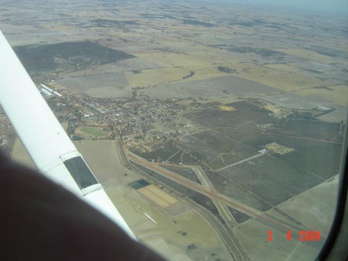 from the east with the main runway 05/23 (1360 mtrs WA Country Airstrip