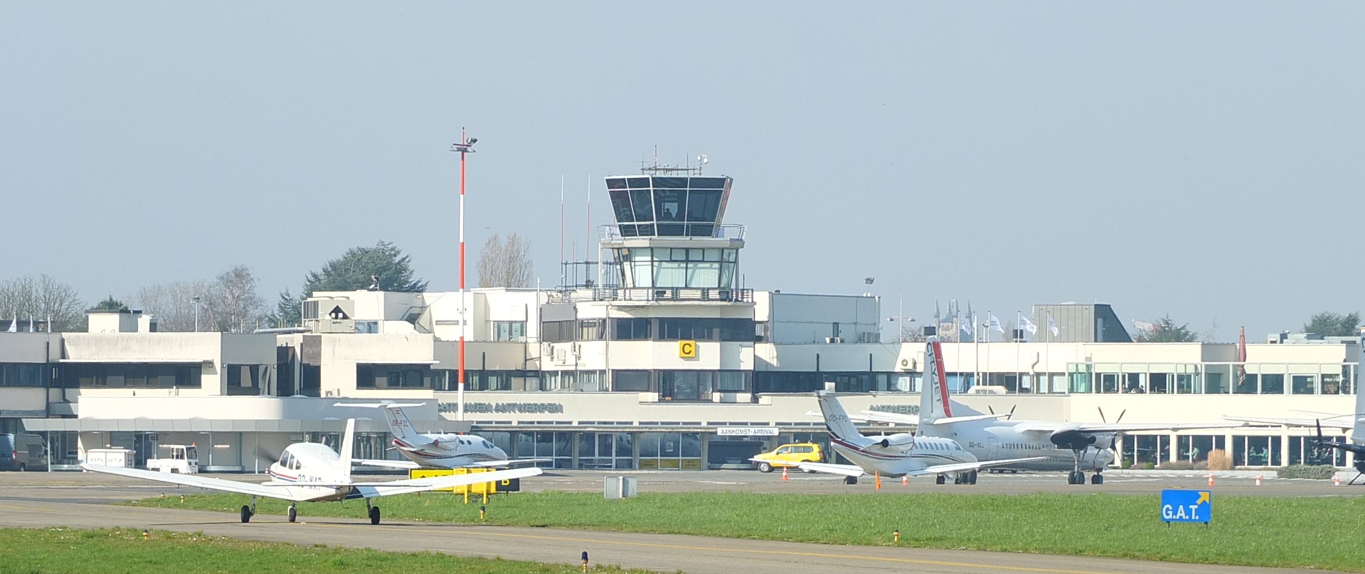 HistoryAntwerp Airport (2019) After the first flying events at the Wilrijkse Plein, work on a proper airport for the city started in 1921, under the impulse of pioneer aviator Jan Olieslagers and others. Sabena operated passenger services from 1924 from an old railway carriage as the only passenger infrastructure. A proper airport terminal was ordered by minister Maurice Lippens and inaugurated in 1930. The airport was home to the aircraft factory Stampe et Vertongen until its demise after WW2. During World War II the airport was used by the Luftwaffe, and also served the nearby Erla aircraft factory. After the German retreat in 1944, it saw brief use by Allied air forces, who called it Advanced Landing Ground B-70. BMI Regional announced the termination of their route to Manchester for 29 November 2013.< The scheduled routes to London-City and Manchester accounted for 63% of the passenger traffic in 2011. Antwerp Airport was home to VLM Airlines from end 2014, since independency from CityJet. VLM was offering flights from Antwerp to Hamburg and Friedrichshafen and was flying on behalf of CityJet on the route Antwerp - London City. However the airline declared bankruptcy on 22 June 2016 due to cancellations of ACMI contracts by People's. Due to VLM's demise, their ACMI customer CityJet handed over the operations of VLM's former service from London City Airport to Antwerp to Danish Air Transport. The Antwerp to Hamburg service was taken over by Chalair Aviation but has been discontinued. On 6 August 2018, the revived VLM Airlines announced the termination of five scheduled routes with another new one not commencing in the coming weeks and that instead it would focus on charter operations. On 31 August 2018 however, VLM Airlines announced the immediate stop of all of their operations from Antwerp. InfrastructureFacilitiesThe airport consists of one small passenger terminal with basic facilities including service desks and a restaurant. The apron features ten stands for smaller aircraft such as the Fokker 50. As there are no jet bridges, walk-boarding is used. Due to its short runway length only just over 1,500 m (4,900 ft), it is not possible to operate aircraft larger than the Boeing 737 at the airport. OperatorThe airport was operated by the Department of Mobility and Public Works of the Flemish Government which made an agreement with the French engineering group Egis Group to operate it starting 2014 for a duration of 25 years. Airlines and destinationsThe following airlines operate regular scheduled and seasonal flights at Antwerp International Airport: