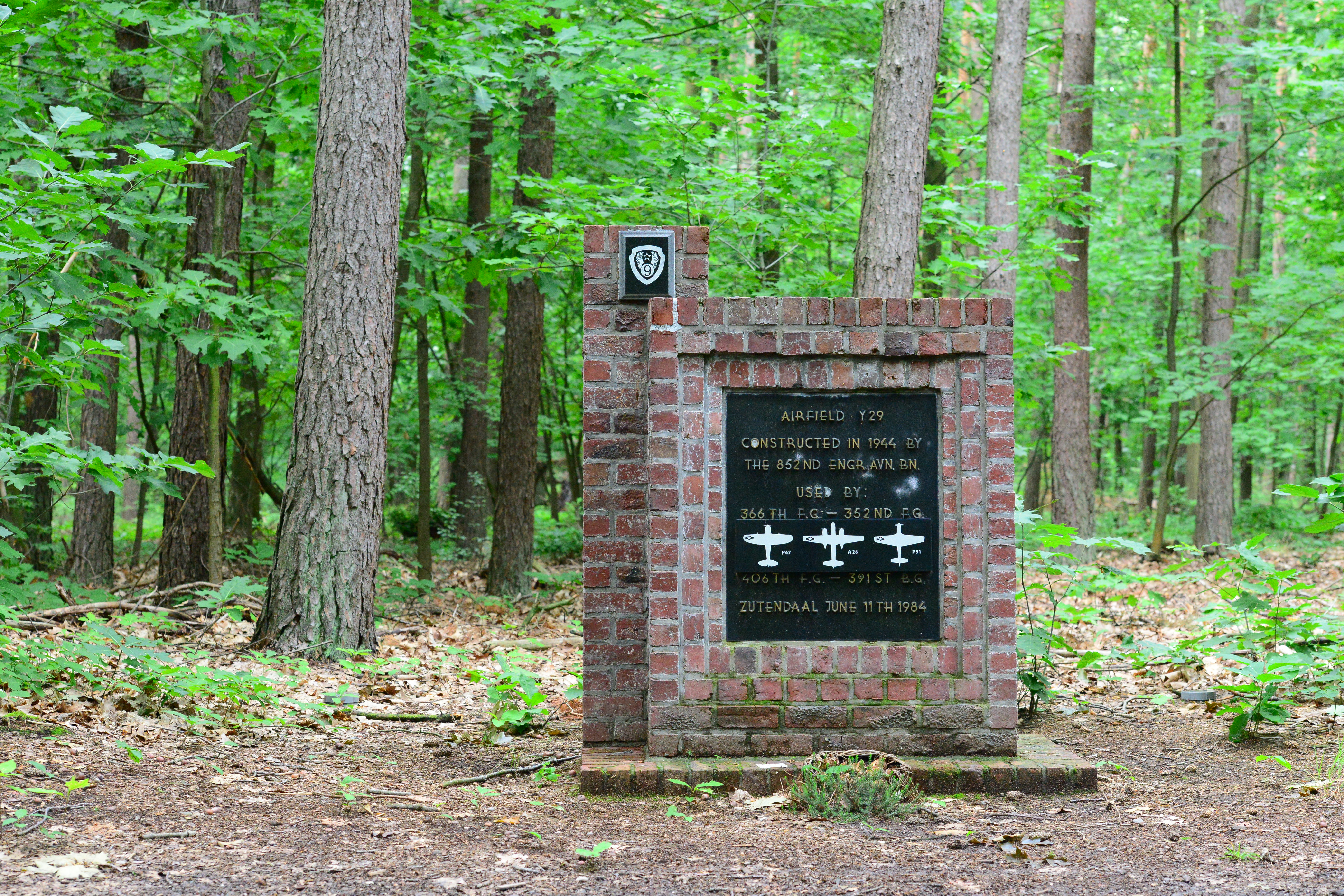 OverviewThe base is in reserve status, its primary use being to store retired Agusta helicopters. Since 2009, it has been open to limited civilian recreational flying; it is home to a gliding club, operating on the weekends. HistoryOriginsZutendaal Air Base’s origins date to March 1917 when it was originally constructed by the German Army Air Corps as «Flieger Schießschule». it was established for observers destined for artillery units. Near this airfield, the Germans selected a large heath area (between Houthalen, Genk, As, Peer and Opglabbeek) where they installed a firing range. After World War I, the name of the airfield was changed to Asch (as it was spelled at the time) and it became the Flying School of the Belgian Military Aviation, later in March 1920 called Aéronautique Militaire. Situated 2 km SW of the town centre of As, this school had a large 1100 by 800 metres grass airfield at its disposal and several metal hangars and brick support buildings. After the Flying School was abandoned in 1924, the airfield was closed to make room for the proposed construction of a canal, and moved to Wevelgem, the field gradually became a dense wooded area. World War IIIn November 1944 a new airfield near the World War I aerodrome was constructed by the United States Army Air Forces IX Engineer Command, 852nd and 846th Engineer Aviation Battalions. Known as Advanced Landing Ground «Y-29», the airfield consisted of a single 5000 foot (1500m) Sod runway aligned 06/24. In addition, tents were erected for billeting and also for support facilities; an access road was built to the existing road infrastructure; a dump was created for supplies, ammunition, and gasoline drums, along with a drinkable water; and a minimal electrical grid for communications and station lighting was installed. Asch was home to North American P-51 Mustangs of the 352nd Fighter Group, Eighth Air Force (which included the 328th Fighter Squadron, led by George Preddy); and P-47 Thunderbolts from 366th Fighter Group, Ninth Air Force, from 19 November 1944 – 11 April 1945. The 406th Fighter Group, also flew from the airfield in P-47s from 8 February – 15 April 1945. The fighter planes flew support missions, patrolling roads in front of the beachhead; strafing German military vehicles and dropping bombs on gun emplacements, anti-aircraft artillery and concentrations of German troops when spotted. On January 1, 1945, Asch airfield was the site of a major aerial battle during the Luftwaffe’s Operation Bodenplatte. The FW-190’s and Bf-109’s of JG-11 arrived at Asch just as the 487th FS of the 352nd FG were rolling down the runway, the ensuing battle came to be known as the Legend of Y-29. The pilots of the 487th Fighter Squadron who took off did so under fire and in the face of overwhelming odds. The 487th scored 23 kills while suffering only 2 damaged aircraft in the face of 3:1 odds. For their performance the 487th received the only Distinguished Unit Citation given to a fighter squadron in the European theatre. When the fighter units moved out, the 391st Bombardment Group flew B-26 Marauder medium bombers from the airfield until 27 May 1945. With the end of the war in Europe, the airfield was closed on 20 June 1945. Belgian Air ForceAfter the war, the airfield was taken over by the Belgian Air Force. It was later rebuilt into a permanent facility with hard surfaced runways and support buildings. Currently it is used by the Belgian Army as a storage depot.