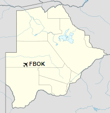Okwa Camp One Airport (ICAO: FBOK) is an airstrip in the Kalahari Desert in Botswana. There is a small surface quarry adjacent to the poorly defined runway, and a small settlement nearby. The nearest town is Kang, 110 kilometres (68 mi) to the southeast.