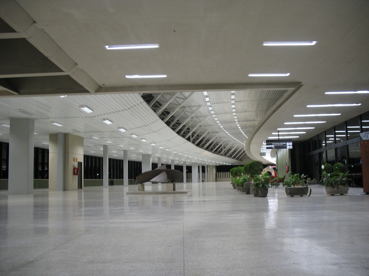 Tancredo Neves/Confins International Airport (IATA: CNF, ICAO: SBCF), popularly known as Confins International Airport, is located in the metropolitan area of Belo Horizonte, in the municipality of Confins. The name honors the memory of former President Tancredo Neves. It is currently the largest and busiest airport in the state of Minas Gerais. It is deemed to be one of the finest and best equipped in Latin America. It used to be under-utilized and was among Brazil's least used airports because Belo Horizonte also has an airport closer to downtown, Belo Horizonte/Pampulha - Carlos Drummond de Andrade Airport. Since 2005 however, most of the flights to and from Pampulha were transferred to Confins International Airport. In 2009, the airport handled 5,617,171 passengers and 70,122 aircraft movements, making it the 6th busiest airport in Brazil in terms of passengers. Its cargo facilities have a capacity of handling 18.000 tonnes (39.682.000 lb) and the warehouse has 6.400 m² (68.889 ft²). The main maintenance facilities of Gol Airlines are located at this airport. HistoryThe airport was built by Infraero in the early 1980s at a cost of $1.2 billion in Brazilian currency. It was inaugurated in 1984. It was built to lessen congestion at Pampulha Airport, which was operating at 120% of its capacity of 1.3 million passengers per year. It was expected that by 1990, passenger movement at Confins would be nearly 2 million passengers per year. However, it only surpassed the 1 million passenger mark 22 years later. Its maximum operational capacity is 5 million passengers per year. Since its inauguration, despite plans to help lessen congestion at urban Pampulha airport, just a fraction of the capacity of Confins has been used. This is in part due to its distance from downtown and, until recently, the lack of satisfactory transportation alternatives to pricey (about $40 USD) taxi fares, leading people to continue to use the more central but very crowded Pampulha. However, by March 2005 the government had transferred 130 flights from Pampulha Airport to Tancredo Neves International Airport, thus increasing annual passenger flow from 350,000 to around 3.0 million in 2005. This was extremely necessary, since Pampulha had been operating at 200% of its maximum capacity, while Confins was known as Infraero's most inefficient and least-used airport. The airport is used primarely as a domestic airfield, but some international flights are operated either one-stop or nonstop out of the airport. TAM Brazilian Airlines offers one-stop international service to and from Buenos Aires, Miami and Paris (the last two with a change of aircraft in Rio de Janeiro and São Paulo, respectively). TAP Air Portugal started offering nonstop service between Lisbon and Belo Horizonte on February 11 2008. Service is five times a week with Airbus A330 aircraft. This flight enables 1-stop connection services between Belo Horizonte and 42 European destinations through Lisbon. In August 21 of the same year Copa Airlines started operations to Panama City using Boeing 737-700s (also five times a week) and, in November 5, American Airlines, inaugurated four times a week, nonstop operations to Miami with Boeing 767-300 equipment. ProjectsMany recent projects have been carried out, including improvement of the highway that links the city center to the airport (MG-10 highway) as part of a larger project called Linha Verde (Green Line), which seeks to reduce the time needed to reach the airport. The Green Line has been mostly completed. Another project, called the "industrial-airport", will tax exempt industries interested in settling their business near the airport, transforming its surroundings. Moreover, comfortable and frequent shuttle buses now link downtown Belo Horizonte and the airport. Their fares range from R$6.75 for the conventional bus to R$15.50 (about $USD 8.00 in April, 2007) for the air-conditioned Executive Shuttle. Tickets are available at booths in the arrivals area. Infraero has plans to increase the number of check-in positions at the airport from 33 to 43 soon and ultimately have 60 check-in positions. There is a project to extend the runway from 3000m to 3660m. At 3000m the current runway may require a weight restriction in take-offs of very long flights. Infraero has further expansion studies with the removal of the current passenger pick-up and drop-off lanes. That space would be used for an enlarged lobby. A new outer lane would be built in part of the current parking lot and parking spaces would be stacked on a three-deck garage. A remote parking lot is currently under construction. Airlines and destinations