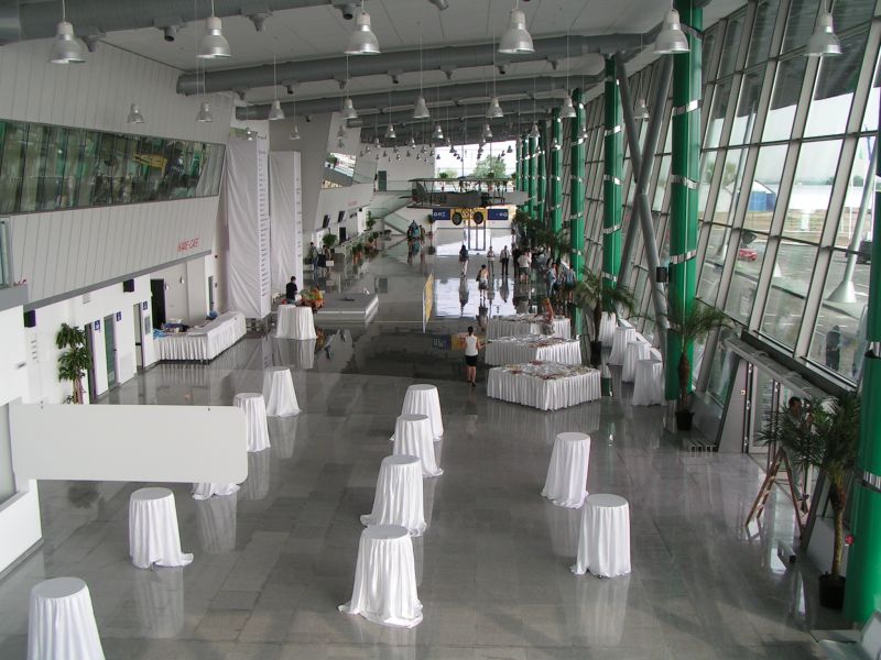 HistoryThe beginning of civil aviation at Plovdiv came with the first test flight between Sofia-Plovdiv-Yambol and Burgas early in 1928. In 1947 nterim civilian flights between Sofia and Plovdiv was carried out. On 2 October 1947, the regional newspaper “Fatherland Voice” reported that over a period of 45 days 1,500 passengers were carried, noting that the flights were always on time. In May the next 1948 regular return flight began between Sofia-Plovdiv-Bourgas and Varna. The same period also saw the former Fifth Air Regiment getting established at the airport, and a ticket office was put into use. The first flight was carried out by the airline Balkan Bulgarian Airlines with aircraft types called TABSO, S-2, and with Li-2. During the Fair Plovdiv airport served an average of 25 aircraft per day. On May 2, 1962 the airport operations moved to the Graf Ignatievo Airbase north of the city. At Plovdiv major restructuring of the airport facilities was carried out. One year later the regional newspaper “Fatherland Voice” published an article with the heading: “He has TRACK OF AIRPORT Plovdiv”. In the same article the public was informed of the expansion of charter flights by Balkan Bulgarian Airlines to such destinations as Berlin, Moscow,Prague, and Vienna; the flights were carried out with aircraft types IL-18, TU-104 and TU-114. On 13 September 1965 a new terminal building was opened, and next year an enlarged tarmac was put into use in time for winter season charter traffic. During these first years at the new location on the north-west perimeter of the airport, the airport serves scheduled domestic passenger flights toBourgas, Varna, Targovishte, Rousse, Sofia and Gorna Oryahovitsa, with mainly IL-14 aircraft. In the 70s the airport underwent considerable improvement and cargo airline Aeroflot Cargo began regular operation with IL-18, AN-12 and TU-154. In 1972 more than 5,000 tons of air cargo went through the airport. On the 18th of April 1978 an IL-76 landed at the airport, with a gross cargo payload capacity of 40 metric tons. Domestic scheduled flights were terminated in 1980, but winter charter flights continue to increase which again leads to a relocation of ground facilities as technical buildings, power supply facilities, air traffic control tower and administrative facilities. On December 18, 1982 the first aircraft TU-134 arrived, a charter flight from Amsterdam, the beginning of a new era for Plovdiv Airport. It is followed by the arrival on the 3rd of November 2010 by a Boeing 737-800 arriving from London Stansted Airport, opening a year-round international passenger service to and from Plovdiv Airport. The airport was the setting for the climax of the 2012 American film The Expendables 2. Plovdiv Airport - The old passenger terminal. Plovdiv Airport - The new passenger terminal (interior). ReconstructionAlthough the airport is operated by the state-owned Letishte Plovdiv EAD and the runway and the apron are also state-owned, the terminal is partly private. That made the renovation of the terminal very difficult. Today the terminal is 58.08% owned by Alfa Finance Holding (former owner of these shares was the Swiss firm TADO) and the rest of the shares belong to the state-owned “Mezhdunarodno letishte Plovdiv” EAD. The problems in agreement with the private owners of the terminal brought the decision from the state to build new terminal and to extend the apron. The renovation process started at the beginning of 2009; the apron extension for 6 additional aircraft stands was made by Glavbolgarstroy and the new terminal building by a local firm. The new terminal building was officially opened on 1 July 2009. The new passenger terminal building has 10 check-in desks and 6 gates. It is designed to handle a capacity of 500,000 passengers a year. The cost are estimated to be EUR 20,000,000. According to British consultants from Airport Strategy & Marketing, which were hired to investigate possibilities for developing new routes, there is big interest from low-cost carriers like Ryanair and Wizz Air. Krumovo Air BaseOn the west side of the airport is located 24th Helicopter Air Base of the Bulgarian Air Force, with Eurocopter AS 532, Mil Mi-24, Mil Mi-17 and Bell 206 units. Aviation Museum PlovdivNext to the airbase is the only functional aviation museum in Bulgaria. Opened in 1991, the museum has a rich collection of modern, cold war airplanes and such from the Third Bulgarian Kingdom. Due to the low state budget, the collection is preserved mostly by donations. The museum is accessible by car on the way to the airport and is about 100m from Mavrudovo railway station. Working hours for visitors are 9:00-16:00. Airlines and destinationsPassengerPlovdiv airport serves the nearby ski resorts of Bansko, Pamporovo and Borovets, and therefore serves mainly charter flights, during the winter season from the end of December until March.