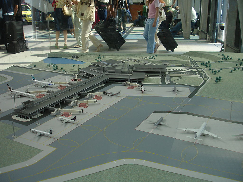 A model of the new airport terminal in the departures hall During the Second World War, the facilities were used by the military. Mail, perishable freight and passenger operations began in 1947 from buildings on the north side of the airport. The passenger terminal (now Terminal 1) on the south side was completed during the Second World War in the manner of a then-modern European railway terminus to designs by the architect Ivan Marangozov. It opened after several years of delay in 1947. The structure comprised a government wing to the west, an international handling area in the middle, and a domestic handling area to the east. At that time, it was planned that the airport would eventually have two intersecting runways at a 30-degree angle to each other. The terminal had substantially reached its capacity of some 600,000 passengers a year by the later 1960s and was subjected to a number of refurbishments and extensions beginning in the spring of 1968. In 1975, a new international arrivals handling extension was opened to the west of the building, the domestic area to the east was enlarged, the government handling area was removed to a dedicated terminal some distance to the west, a VIP handling area opened in the old terminal, apron area was extended to the east and new taxiways opened. A bonded warehouseopened to the east of the terminal square in 1969 and several new hangars followed to the east of the first maintenance base in the 1970s. A new checked baggage handling system opened to the north of the building in the early 1980s, cosmetic and traffic reorganising refurbishments were carried out in 1990, with a substantial landside extension following in 2000. By the late 1970s, the terminal was handling in the region of three million passengers a year, a million of them on domestic routes. Passenger numbers fell off sharply after the 1979 CMEA (“Comecon”) oil price shock and recovered to just over a million a year by the late 1980s. In the early and mid-1990s, domestic traffic practically ceased, while foreign traffic reduced significantly. The latter began growing apace in the late 1990s and early 2000s to reach its current levels. The terminal was last refurbished partially in 1990. In 2000, it underwent a wholesale update in which the international arrivals area was moved to the east wing where domestic handling had been, the former international arrivals area to the west was closed, and the layout of the central international departures area was changed in line with world developments. Despite the work to the old terminal, the airport was becoming overwhelmed with passenger traffic. Options for different airport developments began to be examined in the mid-1960s. One option was to relocate the facility to a new site, with some locations up to 70 km (43 mi) from Sofia). Another option involved extending the airport’s area radically to the north-east and gradually removing the focus of the airport there. A third option was to develop substantially the same site. By the later 1980s, the authorities had settled on the last option. Project design, involving a new terminal to the east of the old facility, a new runway to the north of (and parallel to) the existing runway, and taxiways, was completed by the mid-1990s. A finance package involving very significant European and Kuwaiti investment was initially agreed in 1998 and was in place by 2000. Work began in 2001. The new runway and some taxiways were completed in mid-2006. Terminal 2 was formally inaugurated on 27 December 2006. Design and construction of a new control tower was discussed in 2006 but this project appeared to be in abeyance by 2008. Over the years, Sofia Airport has been criticised for its lack of world class air freight facilities and for some access problems. Passengers to and from the Bulgarian interior have to access or egress the airport through crowded rail and coach facilities in central Sofia. A rail link has been discussed on several occasions since the 1960s but no moves have been documented to its implementation. The airport is occasionally criticised as a source of environmental noise and pollution and strict noise abatement procedures have been enforced for departing traffic since the mid-1970s, while arriving traffic is generally routed to approach the field from the east, clear of Sofia. A significant and recurring operational criticism of Sofia Airport has concerned its historical lack of all-weather operations capability. Though the new runway was designed for ICAO Category 3 operations, in 2007 it emerged that radio interference from security fencing, and most significantly from a large newly built lorry park, prevented certification (and hence use) of the associated radio navigational aids. During the winter months, the airport, located on a high alluvial plain surrounded by mountains, suffers from very significant and frequent fog precipitation. In such circumstances, flights are redirected to diversion airports in Bulgaria or neighbouring countries, lengthening journeys by many hours. Sofia Airport -