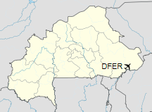 Arly Airport (IATA: ARL, ICAO: DFER) is a public use airport located near Arli National Park or Arly, Tapoa Province, Burkina Faso. While the runway outline is clearly visible, it appears overgrown with vegetation and may be unusable. However, the airfield is still listed in the official ASECNA Aeronatical Information Publication for Burkina Faso and has an official IATA 3-letter code, though its 4-letter code does not appear to be recognised by ICAO