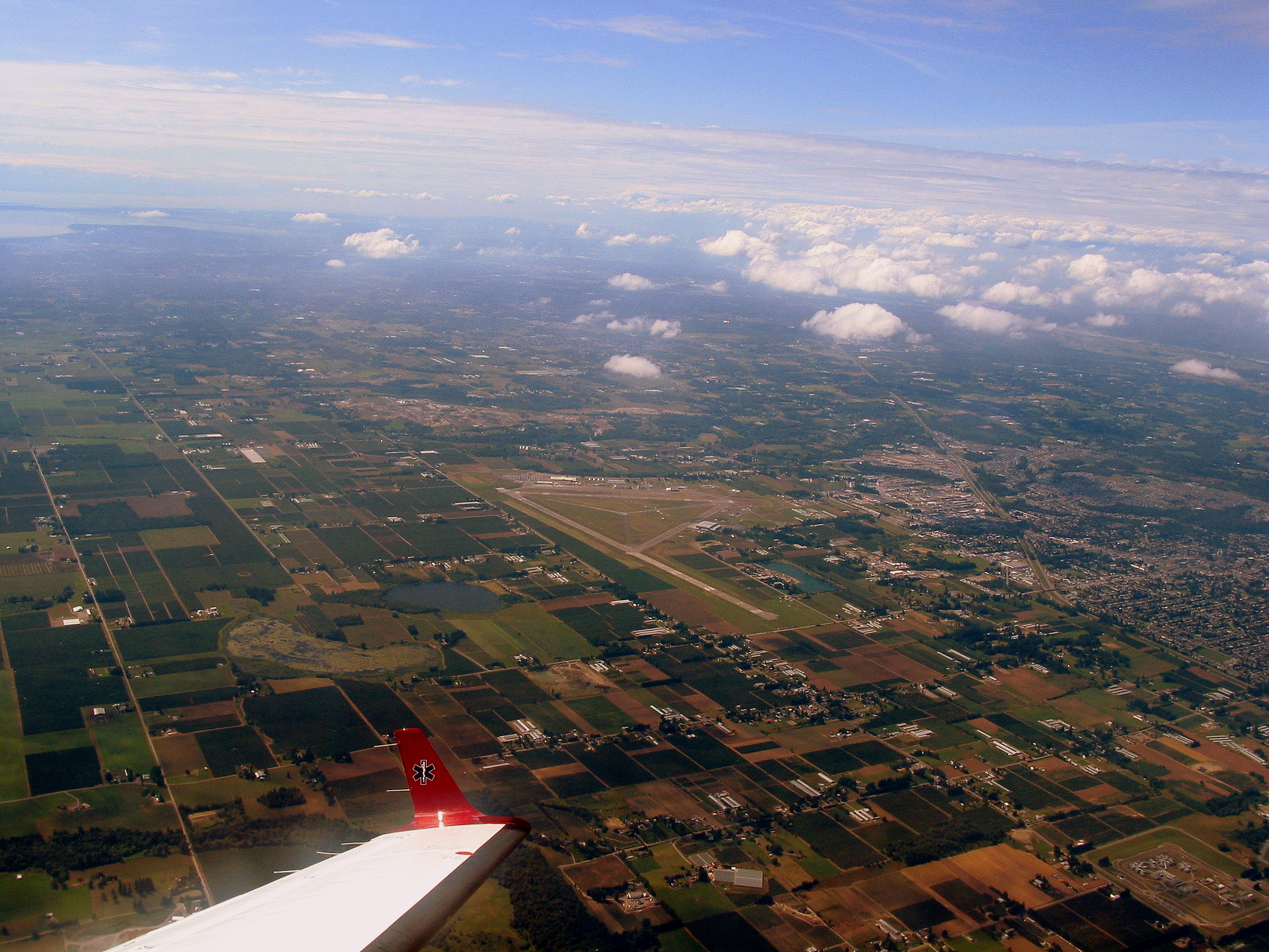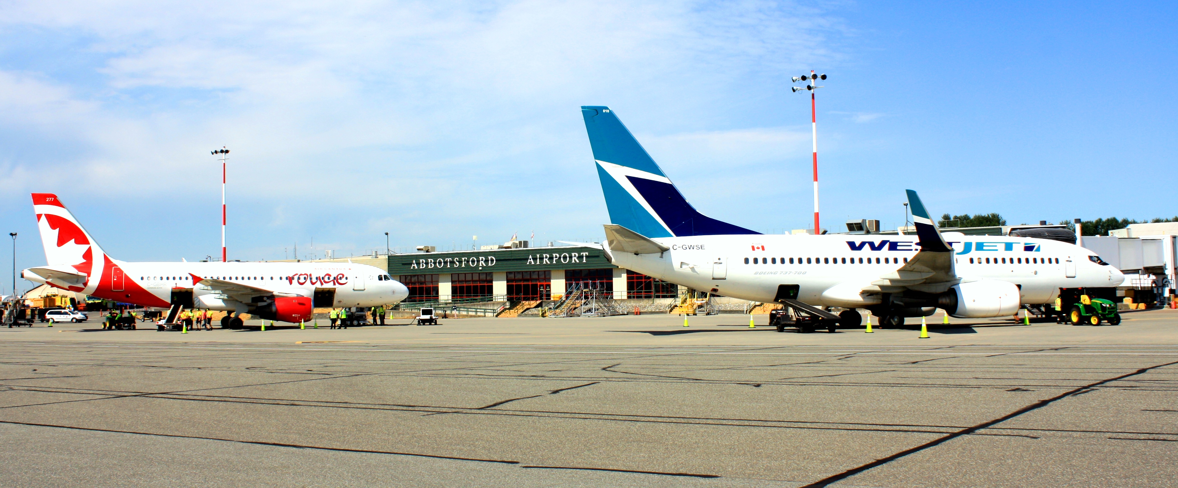 HistoryThe Royal Canadian Air Force purchased the land to build Abbotsford Airport in 1940. In 1943 the construction of the three 1,555 m × 60 m (5,100 ft × 200 ft) runways based on a triangular layout were complete. The same year, under the British Commonwealth Air Training Plan, the No. 24 Elementary Flying Training School started operations from this location until 1944. The No 5 Operational Conversion Unit was split between Abbotsford and Boundary Bay Airport. Abbotsford Airport Entrance Following World War II, the airport was largely used for general aviation and as a secondary field to Vancouver International Airport. Prior to the use of instrument landing systems, fog could make Vancouver unusable and flights had to land at Abbotsford. If a big earthquake floods or otherwise damages low-lying Vancouver Airport on Sea Island in Richmond, then as many flights as possible will likely be looking to land at Abbotsford Airport. The airport became the home to Skyways Air Services and Conair Aviation in the 1960s. Abbotsford is still the primary base for Conair's fleet of water bombers. In September 1984 Pope John Paul II held an open-air mass for over 200,000 people at the airport. Abbotsford Airport runway 07/25 On January 1, 1997 the ownership of the Abbotsford Airport was transferred from the Department of Transport to the City of Abbotsford for a sum of $10. In June of that year, Abbotsford became a jet passenger airport in with the start of scheduled service to Alberta by WestJet. Prior, Airspeed Aviation had been the exclusive operator offering regional service to Victoria, B.C. since 1986. Canada 3000 was the first airline to offer transcontinental service from Abbotsford to Toronto in June 2000. Abbotsford's first international charter flight was to Puerto Vallarta, Mexico in December 2003 by tour operator Transat Holidays. Since 2000 many airlines and tour operators have come and gone from Abbotsford, including Air Canada, Air Canada Tango, Air Canada Jazz, Air North, Canada 3000, Central Mountain Air, Helijet, Jetsgo, Signature Vacations, Zoom Airlines, Harmony Airways, Peace Air and ZIP Air. In 2010, a new parallel taxiway was added alongside runway 07/25, and the main airport apron was extended. An aircraft run-up bay that can accommodate up to three medium weight category aircraft at the same time was added near the Cascade Aerospace hangar.AirshowSince 1962, the airport has hosted the annual Abbotsford International Airshow usually held the second weekend in August. Designated as Canada's national airshow in the mid 1970s by Prime Minister Pierre Trudeau, it is Canada's largest airshow as well as one of North America's largest airshows. It has been listed as one of the ten best airshows in the world. it draws airplane enthusiasts from all over Western Canada and the Northwestern United States. The static displays allow people to get up close to many of the exhibits while numerous performances decorate the skies above. The International Council of Airshows awarded a Silver Pinnacle Award to the airshow in 2014. Airlines and destinationsA Douglas DC-6 of Conair in 1983