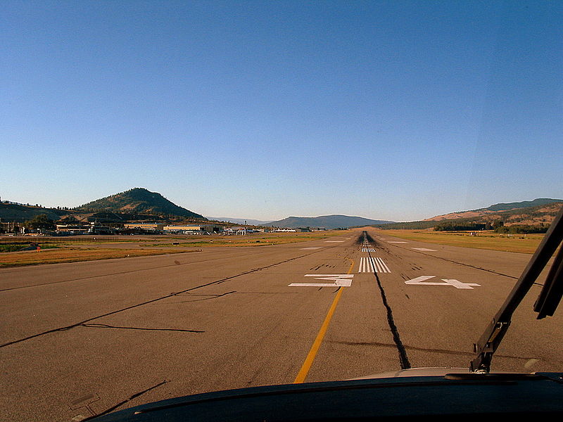 Ground transportationCars, buses and taxis can connect to the airport for Kelowna via Highway 97N. The airport has an outdoor parking lot next to the terminal and some short term spaces near the terminal building. Public transitThe airport is serviced by Kelowna Regional Route 23 and Vernon Regional Route 90 (rush hour service only) buses, which connect Vernon and Lake Country with UBC Okanagan Exchange in Kelowna. The airport is not served by the bus on evenings and weekends. Passengers heading to downtown Kelowna or West Kelowna can transfer to 97X Kelowna RapidBus at UBC Okanagan Exchange. Future expansionIn 2006, the Kelowna International Airport Advisory Committee created the Master Plan 2025, a document dedicated to the expansion of the Kelowna International Airport. The Plan is expected to cost approximately $150 million. Due to YLW's unprecedented growth, a Master Plan was required to aid in keeping the airport at modern traffic handling standards. By 2008, the airport lengthened the single runway to 8,900 ft (2,700 m), and plans to lengthen to 10,000 ft (3,000 m) by 2025. Also, the passenger terminal has been expanded so as to allow hourly processing of 680 passengers in 2015, and will be further expanded as to allow 900 passengers by 2025. Currently, the hourly rate is approximately 400 passengers. In order to do this, the terminal size will be nearly doubled, and a 2,400 space parkade will be constructed. Also, to reduce vehicular traffic congestion, a diamond overpass/underpass interchange will be constructed at the current intersection of Highway 97 and Airport Way. Accidents and incidents