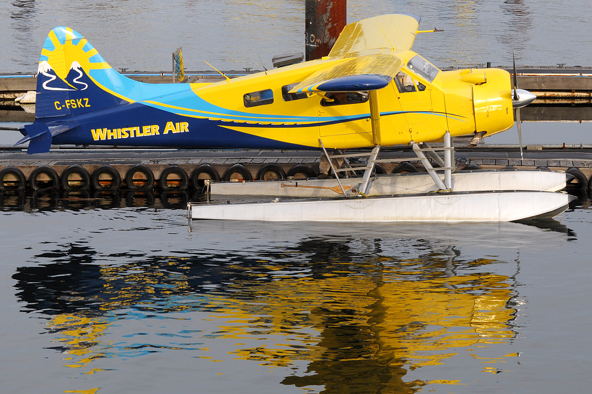 Control towerVancouver Harbour Control Tower The Vancouver Harbour Control Tower is the only one in Canada specifically for a water aerodrome. At 142 m (466 ft) above ground it is the highest control tower in the world. and is located on top of the Granville Square building. In 2009 the airport handled 54,741 aircraft movements, the 35th busiest in Canada. It is also the 8th busiest aerodrome in BC and the busiest water aerodrome in Canada. Itinerant aircraft movements (from one airport to another) for the aerodrome were 54,711 while local movements were 30. OperationsA Whistler Air de Havilland Canada DHC-2 Beaver docked at Vancouver Harbour Flight Centre The actual aircraft docking area, at 49°17′26.44″N 123°07′08.90″W, is situated just west of Canada Place. This part of Burrard Inlet is listed by Nav Canada as a restricted area and no aircraft are permitted to take off, land or move through the zone at a high speed. Just north of Canada Place is a rectangular section called "Area Alfa", centered on the official coordinates, which is the main aircraft operating zone. In 2007, the link to Victoria Inner Harbour Airport was, according to the Official Airline Guide, Canada's busiest air route by the number of weekly flights. Airlines and destinations