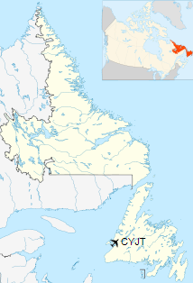 Stephenville Airport (IATA: YJT, ICAO: CYJT) is an airport located 1 nautical mile (1.9 km; 1.2 mi) south southeast of Stephenville, Newfoundland and Labrador, Canada. It was built by the United States Air Force and operated as Ernest Harmon Air Force Base from 1941-1966. The airport serves not only the town of Stephenville, but the city of Corner Brook to the north, and as far south as Port aux Basques, making the total catchment 100,000 people. The airport is classified as an airport of entry by Nav Canada and is staffed by the Canada Border Services Agency who are able to process general aviation with up to 30 passengers.