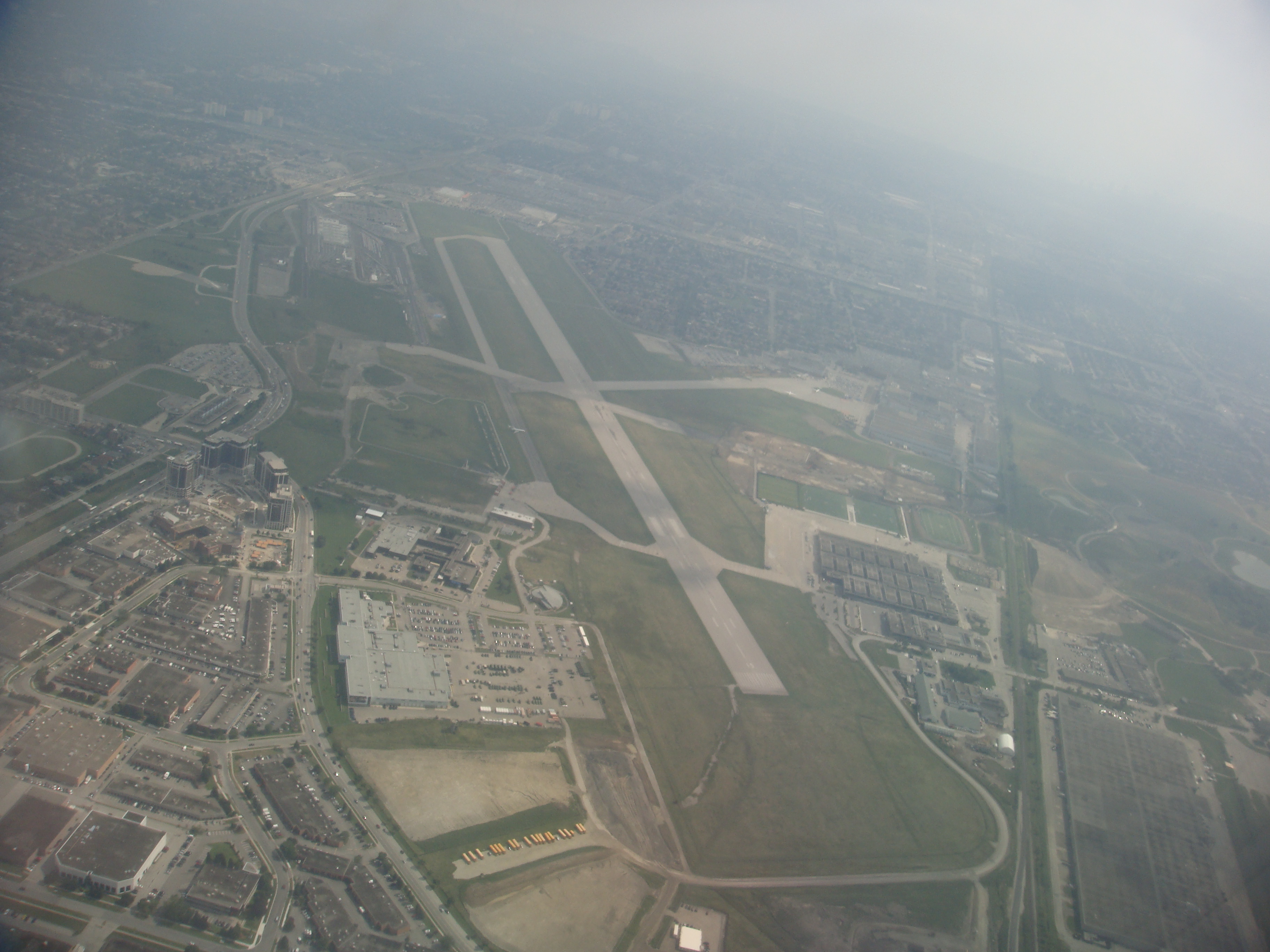 HistoryDownsview AirfieldDownsview Airfield opened in 1929 as general aviation airfield and one of two airports in the area. It was built by de Havilland Canada for testing aircraft at the plant at the site. The site was expanded during World War II by the Royal Canadian Air Force and renamed RCAF Station Downsview. Downsview AirportThe Downsview Airport was developed in 1939 as an airfield next to an aircraft manufacturing plant operated by de Havilland Canada. In 1947, the Department of National Defence purchased property surrounding the airfield and expanded it, creating RCAF Station Downsview to provide an air base for Royal Canadian Air Force units. The base was renamed Canadian Forces Base Toronto (Downsview) in 1968 and retained this name until its closure in 1996. Since 1998, the property has been administered by a civilian Crown corporation, Parc Downsview Park, which co-manages the airfield with Bombardier Aerospace (the successor to de Havilland Canada). In recent years the property has been undergoing various landscape usage plans and some redevelopment has taken place. The airfield was used in recent years to host the 1984 and 2002 papal visits by Pope John Paul II, as well as to host the Molson Canadian Rocks for Toronto concert headlined by The Rolling Stones to revive the local economy after the severe acute respiratory syndrome (SARS) outbreak in 2003. The airfield has also served as a test site for several famous aircraft produced by de Havilland and Avro Canada, including the Beaver, the Twin Otter, Dash 8 and the Avro Arrow. The airport is available to pilots only with prior permission. Bombardier Aerospace currently owns 12 hangars in the southwest corner of the airport, where the De Havilland Dash 8 is built and assembled. The Bombardier Global Express and the Bombardier Global 5000 are also assembled here at the Downsview plant, as are the wings and wingboxes of the Learjet 45. The Bombardier CSeries jet had landed at the airfield in 2015, but is assembled in Montreal. The airport has one operational runway, 15/33 at 7,000 ft (2,100 m) with a parallel taxiway. Runway 09/27 at 3,164 ft (964 m) is closed (east section removed), as is runway 04/22 at 4,000 ft (1,200 m) (north section removed and south part retained as taxiway into the Bombardier plant). Tenants