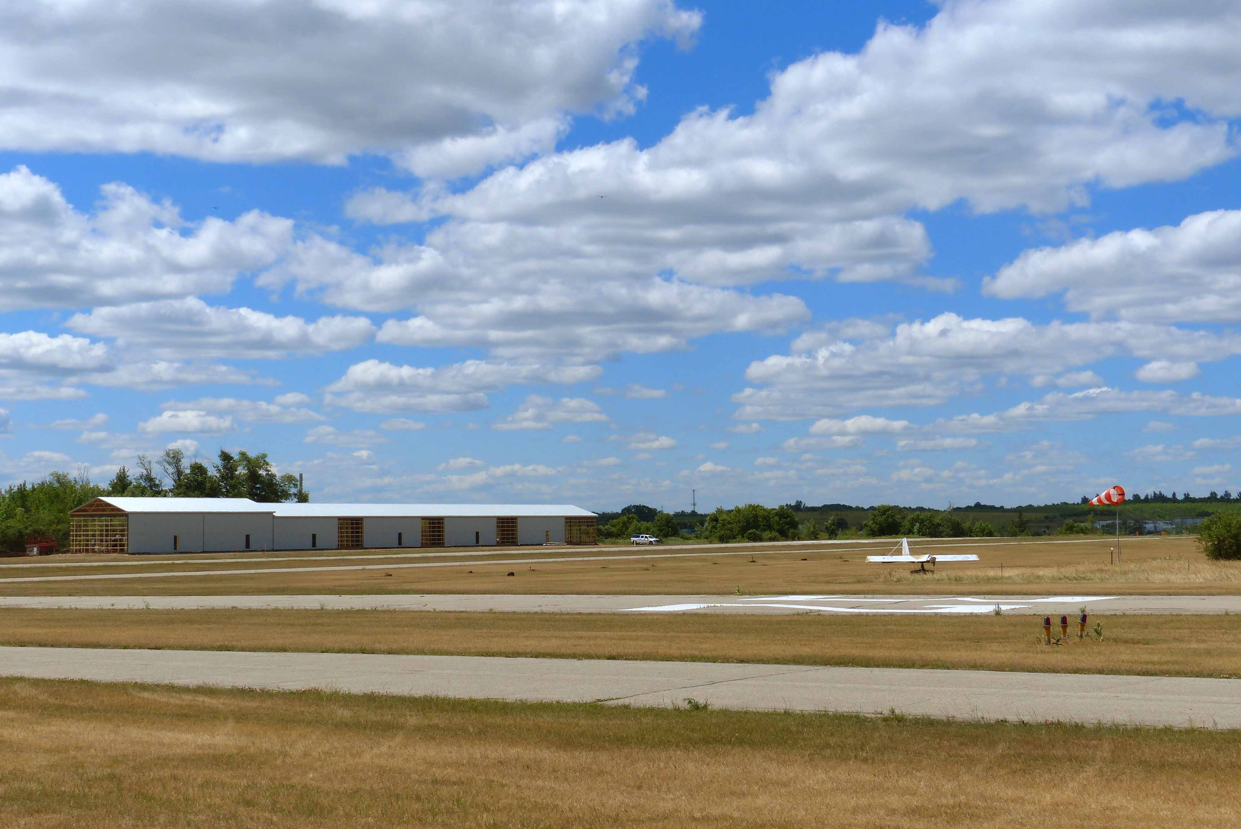 Guelph Airpark in 2016The airfield has one major tenant, the Tiger Boys Aircraft Works, and numerous private owners. Fern Villeneuve keeps his aircraft there. Guelph Airpark is a transfer point for the Province of Ontario's air ambulance service - ORNGE. ORNGE helicopters land on the ramp near the terminal building and transfer patients to and from land ambulances. Antique aircraft often use the grass between runway 05/23 and the east-west taxiway for landings and takeoffs. Occasionally gliders on cross-country flights land at Guelph if they run out of lift. Runway 14/32 has lighting. There is a weather station about 2 kilometres west of the airfield on the grounds of the University of Guelph's Turf Grass Institute. In 2016 Environment Canada reports some observations from this station. In the spring of 2016 eight new hangars are under construction. The content above was published at Airports-Worldwide.com in 2018.