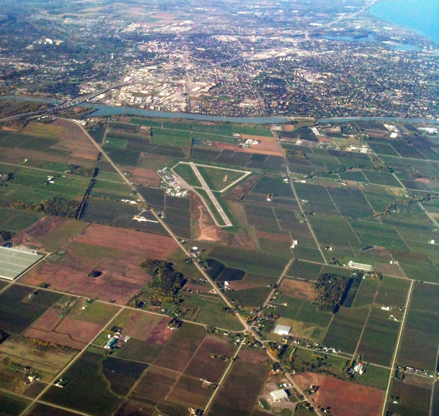 Being located adjacent to the Welland Ship Canal, one mile from the main line of the C.N.R. [Canadian National Railway], three-quarters of a mile from the Queenston Hydro power lines, and in the very centre of the Peninsula's three largest adjacent communities (St. Catharines, Merritton and Thorold) it offers aviation industry all that could be desired and being only one mile from the half-hourly radial service which serves every community on both sides of the Niagara River, it offers easy access to the airways of Canada and the United States.