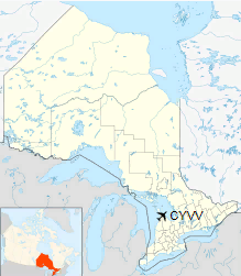 Wiarton Airport, (IATA: YVV, ICAO: CYVV), is located 1.5 nautical miles (2.8 km; 1.7 mi) east of Wiarton, Ontario, Canada.