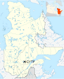 Alma Airport (IATA: YTF, ICAO: CYTF) is located 2.2 nautical miles (4.1 km; 2.5 mi) south of Alma, Quebec, Canada. It mainly offers private flights, but it also has storage for private jets. Other services provided by Alma Airport are refuelling of Jet A type services, service of charters of helicopters and helicopter maintenance, service of refuelling of 100 LL type by Aviatech Products, air ambulance of the Quebec Government services, road maintenance, free parking next to the airport, and private terminals.
