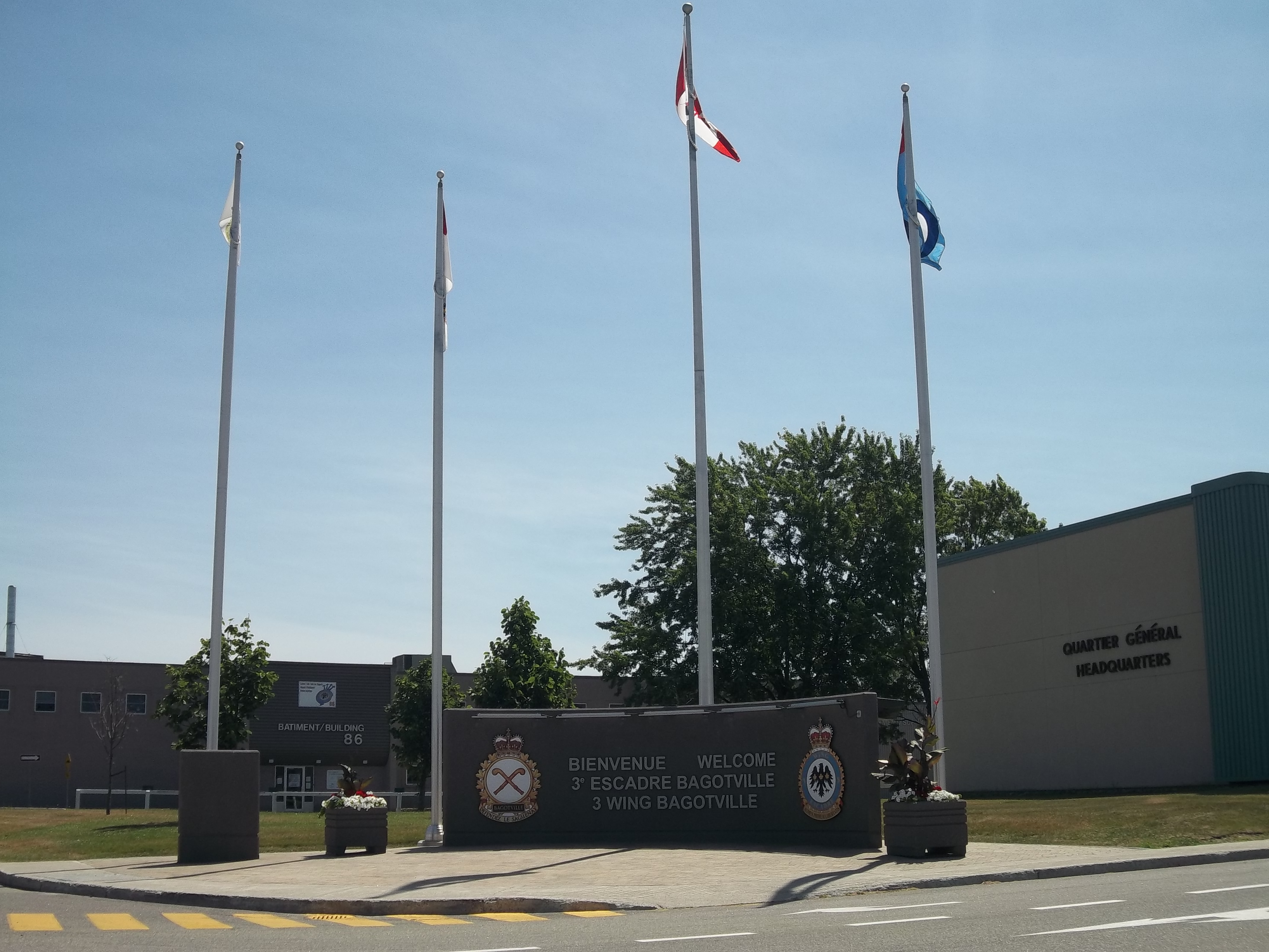 Canadian Forces Base Bagotville (IATA: YBG, ICAO: CYBG), commonly referred to as CFB Bagotville, is a Canadian Forces base located 4.5 nautical miles (8.3 km; 5.2 mi) west of Bagotville in the city of Saguenay, Quebec. Located in the centre of Quebec, less than 200 km (120 mi) north of Quebec City , CFB Bagotville is operated as an air force base by the Royal Canadian Air Force (RCAF) and is one of two bases in the country using the CF-18 Hornet fighter/interceptor, the other being CFB Cold Lake. Its primary RCAF lodger unit is 3 Wing, commonly referred to as 3 Wing Bagotville. CFB Bagotville's airfield is also used by civilian aircraft, with civilian operations at the base referring to the facility as Bagotville Airport (French: Aéroport Bagotville). The airport is classified as an airport of entry by Nav Canada and is staffed by the Canada Border Services Agency (CBSA). CBSA officers at this airport can handle aircraft with no more than 30 passengers between 0800-1630 on weekdays. As of June 2018, the base commander is Colonel William Radiff. As of 2018, 1,700 military and civilian people work at CFB Bagotville.